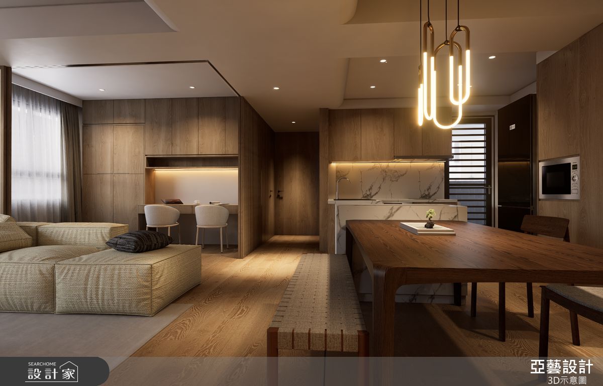 由亞藝設計精心規劃的35坪三房住宅空間,家庭成員一共有2位大人。因應屋主需求,設計師運用簡約風作為主軸,搭配乳膠漆、超耐磨木地板、灰鏡、木作貼皮、磁磚、石材、長虹玻璃,打造全家人的夢想家居。