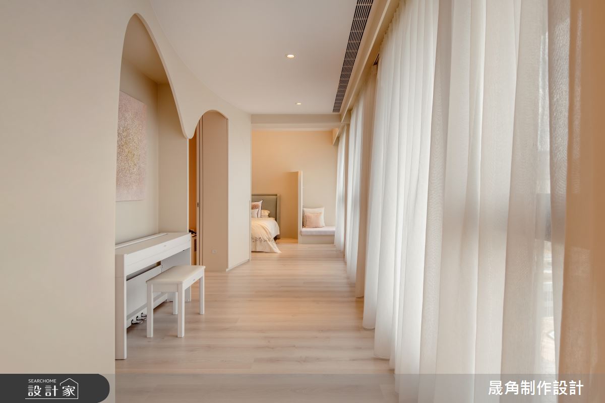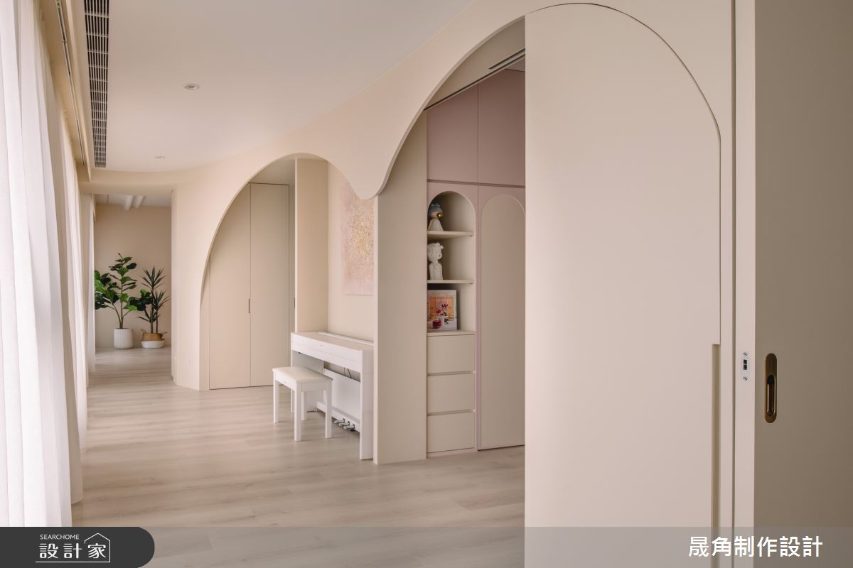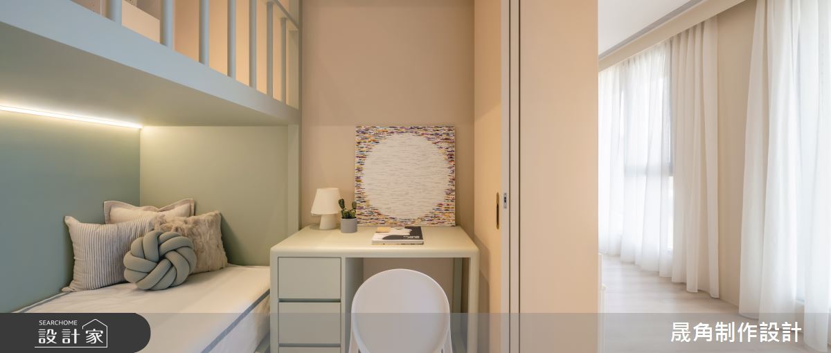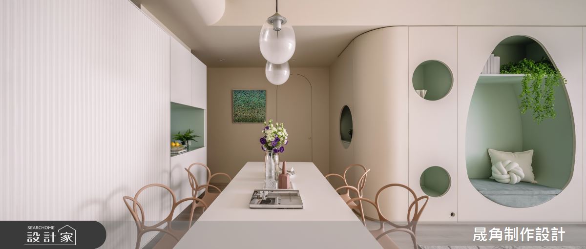 晟角制作設計以超耐磨木地板、進口超耐磨漆的搭配應用,呈現混搭風居家氛圍,將此間65坪、三房、單層、新成屋(5年以下)打造成舒適愜意的家庭空間,完成2位大人、2位小孩全家人的夢想之居。