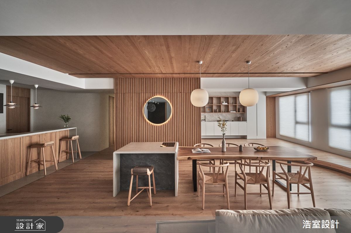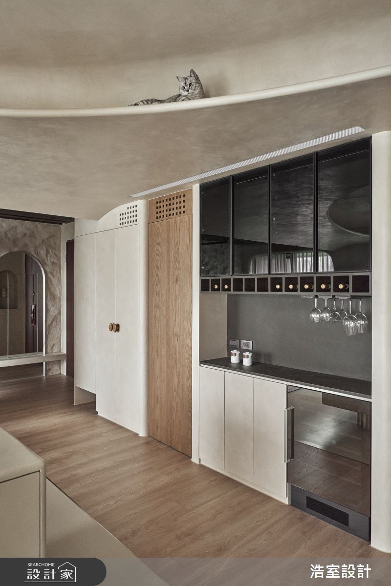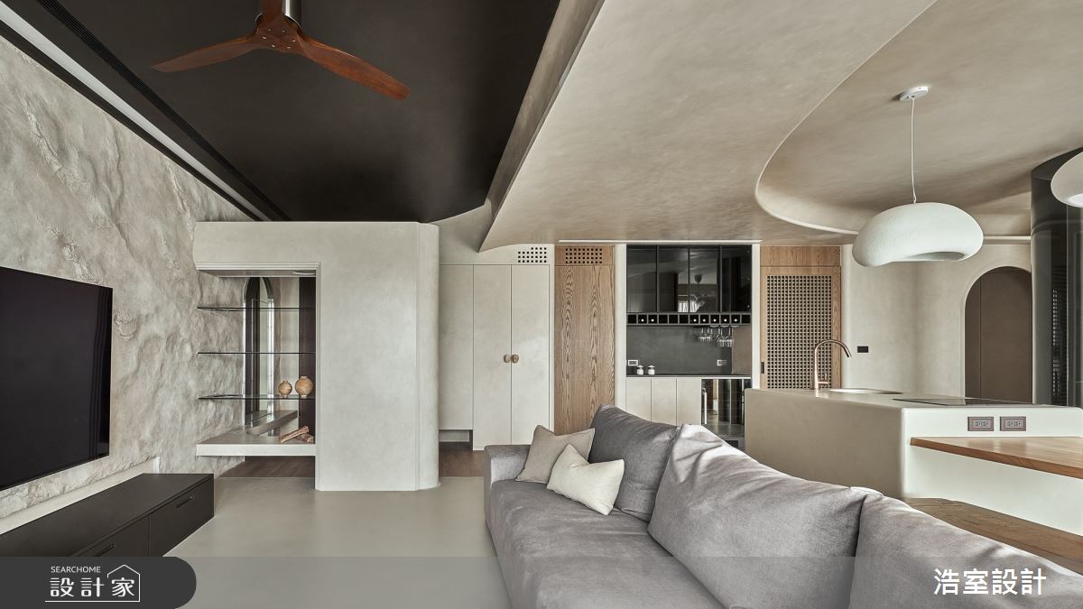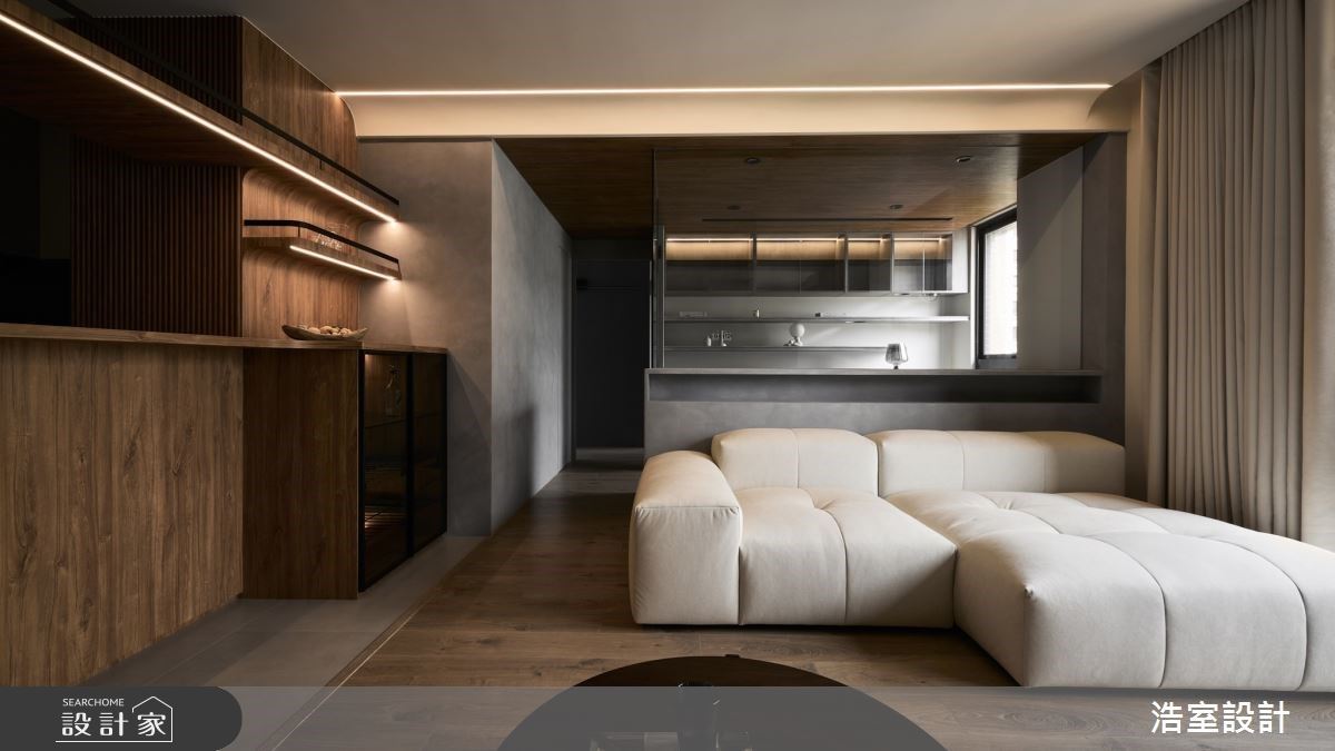 由浩室設計精心規劃的35坪兩房住宅空間,家庭成員一共有2位大人。因應屋主需求,設計師運用侘寂風作為主軸,搭配磁磚、超耐磨木地板、實木皮、義大利塗料、鐵件、進口系統板,打造全家人的夢想家居。