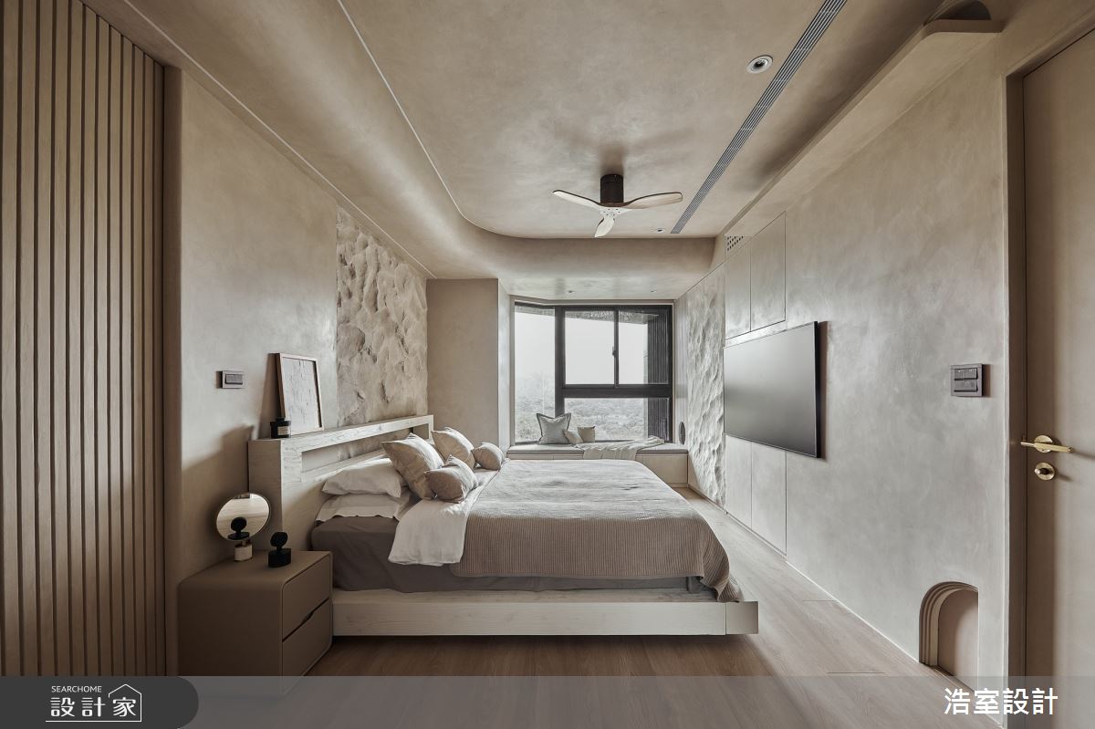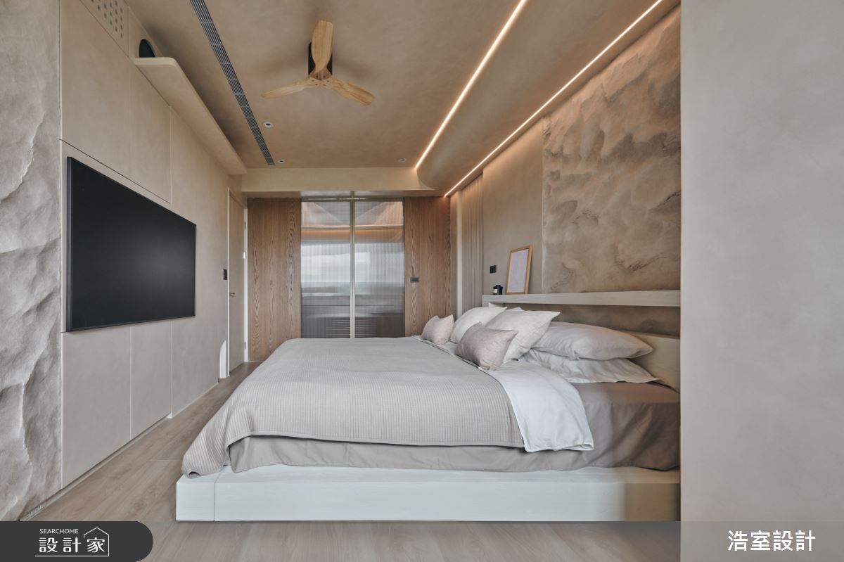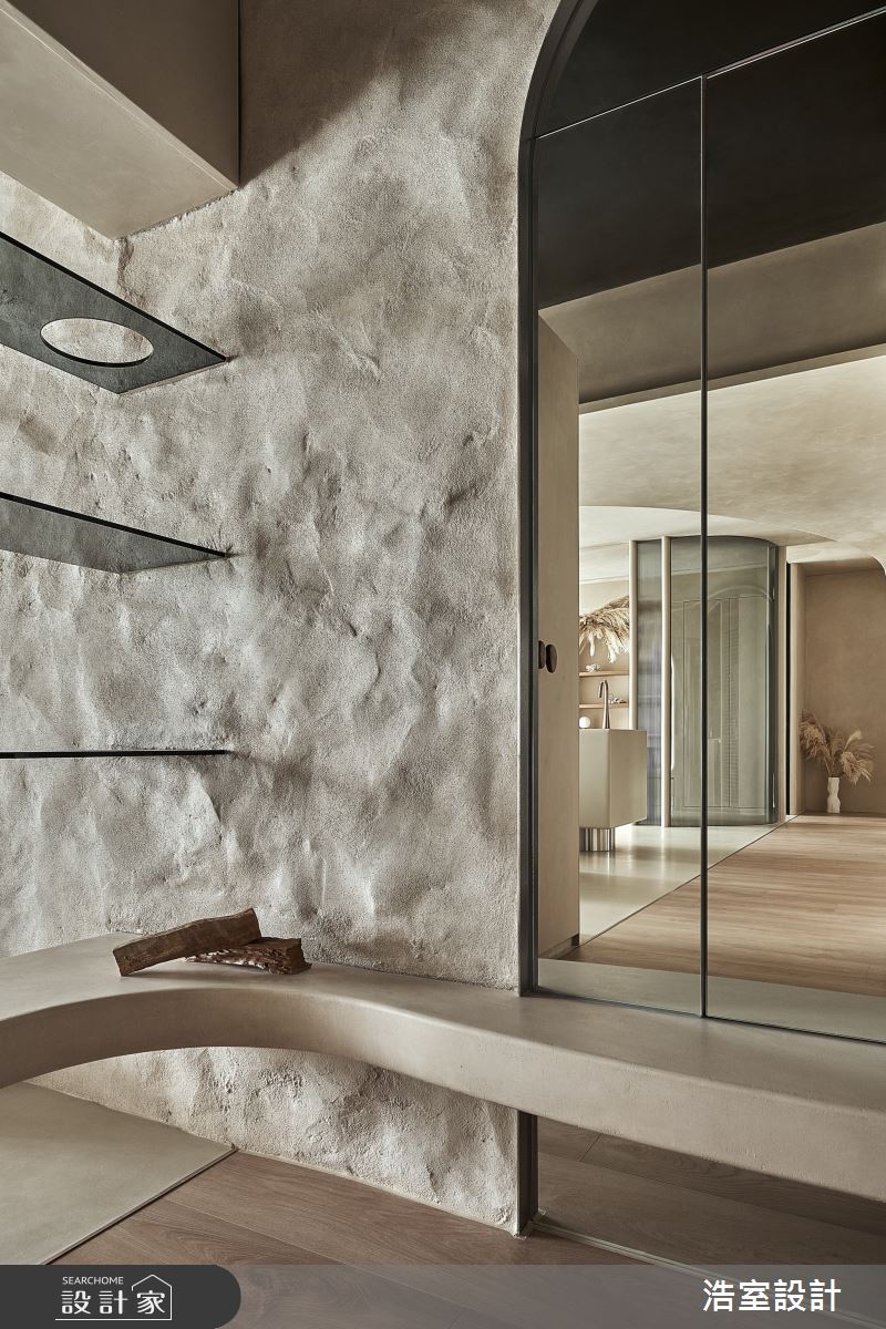 由浩室設計精心規劃的35坪兩房住宅空間,家庭成員一共有2位大人。因應屋主需求,設計師運用侘寂風作為主軸,搭配磁磚、超耐磨木地板、實木皮、義大利塗料、鐵件、進口系統板,打造全家人的夢想家居。