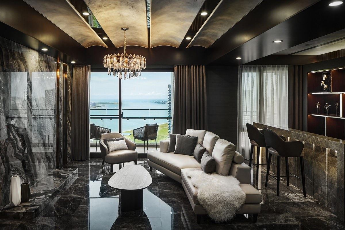 30坪的奢華風新成屋為2房2廳,因座落位置於臨海處,屋主將此處做為招待所使用,在設計上期待呼應自然、實現