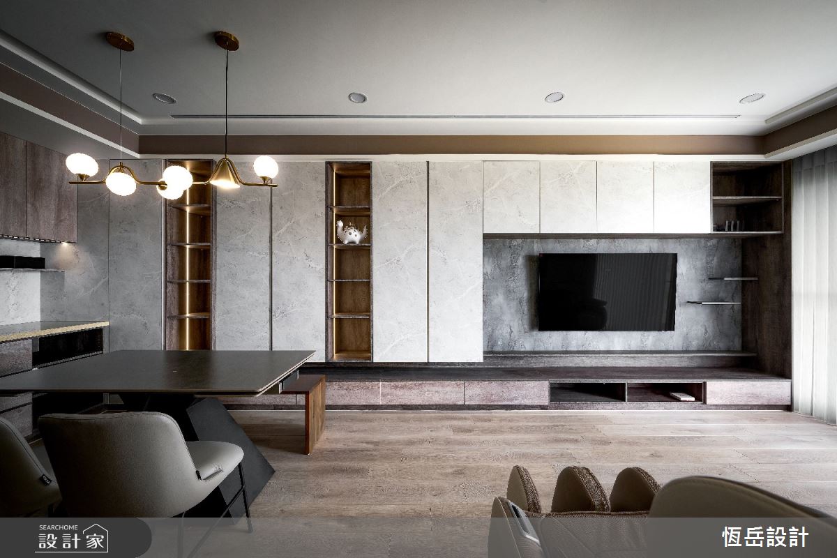 由恆岳設計精心規劃的33坪三房住宅空間,家庭成員一共有2位大人、2位小孩。因應屋主需求,設計師運用輕奢現代風作為主軸,搭配大理石、木皮、特殊漆、系統櫃,打造全家人的夢想家居。