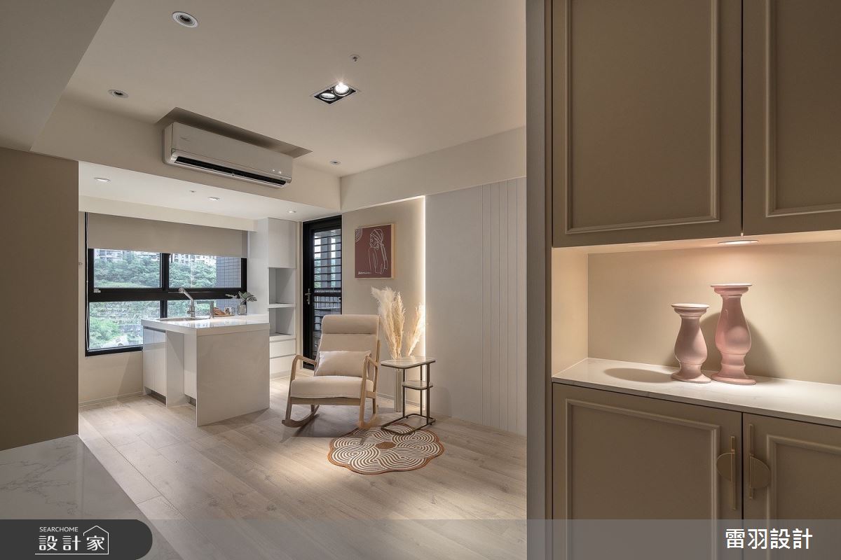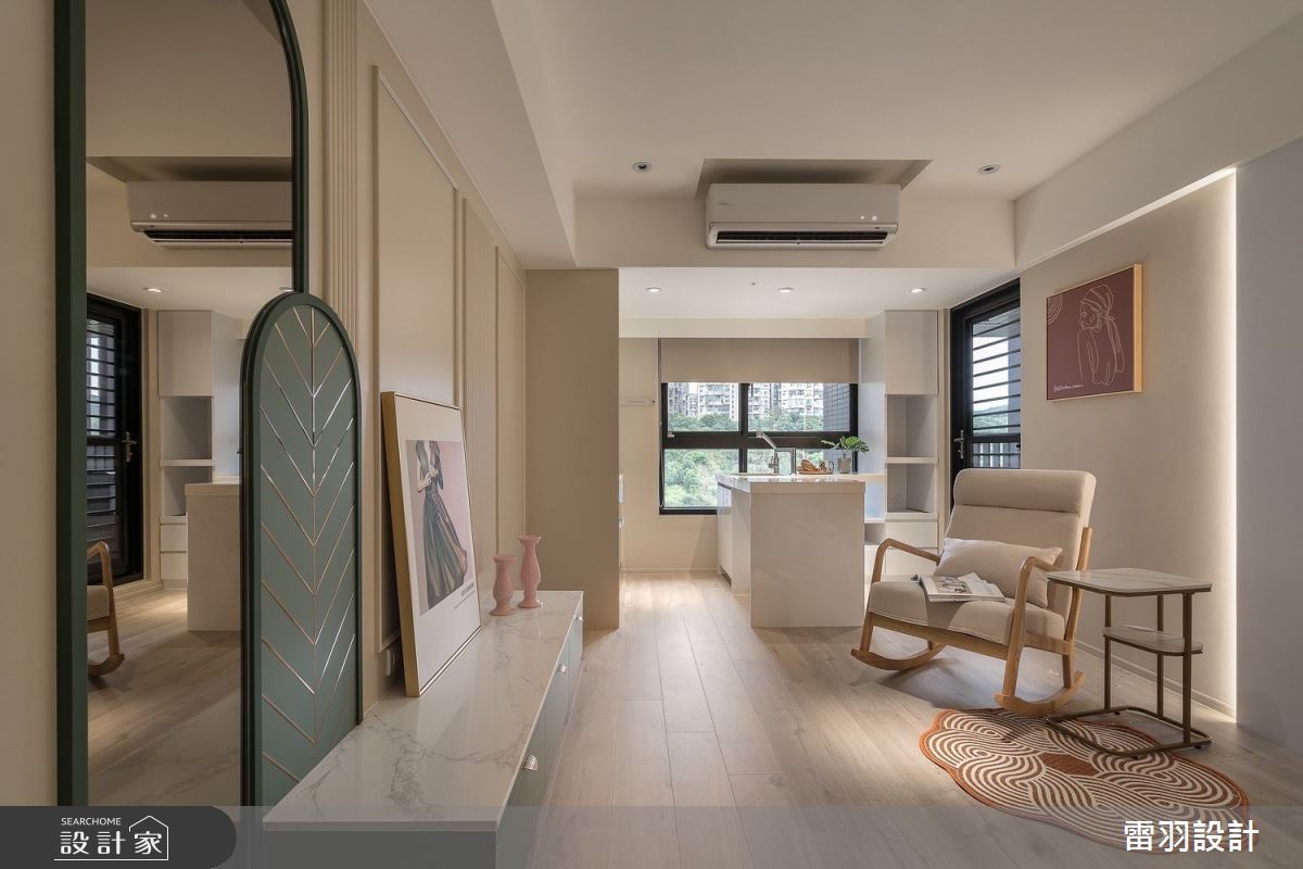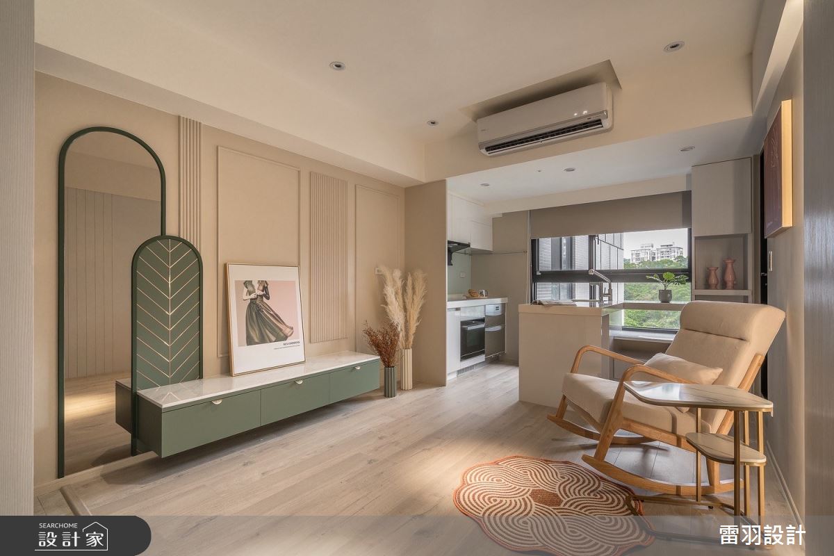 本案為雷羽設計的25坪新古典輕奢風新成屋(5年以下)設計作品,格局為單層兩房的居住空間。居住成員包含1位大人、1位長輩。全室建材的搭配,應用乳膠漆、超耐磨木地板、不鏽鋼、鐵件、茶鏡、烤玻、木作貼皮、烤漆、水泥/水泥粉光、人造石、賽麗石、噴漆、斯曼特藝術漆,展現溫馨的居家氛圍。