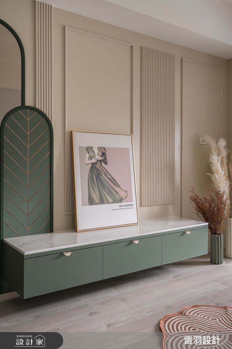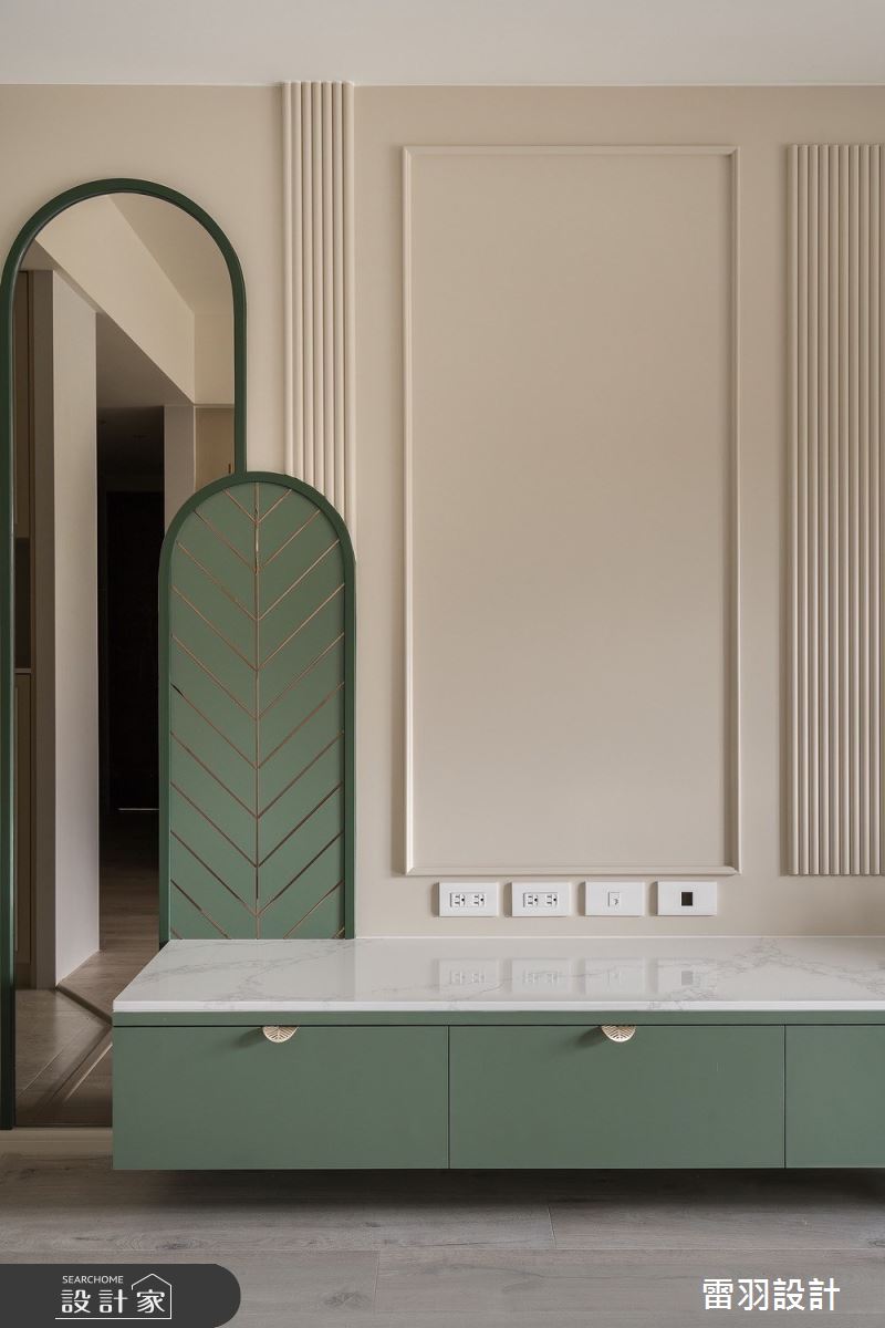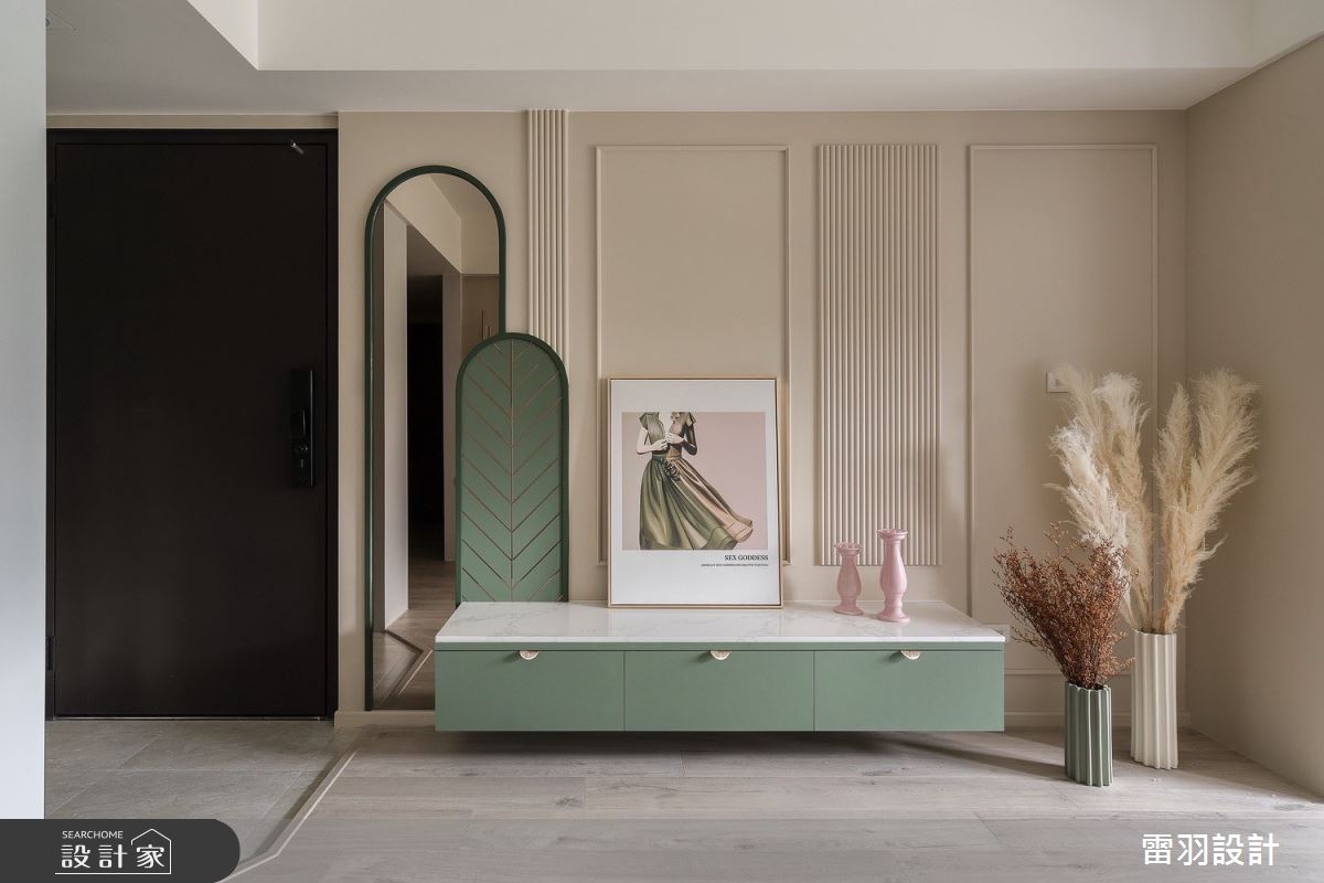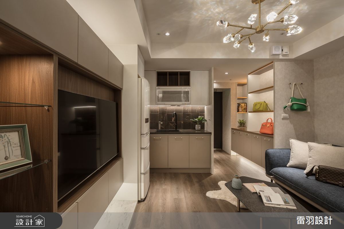 本案為雷羽設計的25坪新古典輕奢風新成屋(5年以下)設計作品,格局為單層兩房的居住空間。居住成員包含1位大人、1位長輩。全室建材的搭配,應用乳膠漆、超耐磨木地板、不鏽鋼、鐵件、茶鏡、烤玻、木作貼皮、烤漆、水泥/水泥粉光、人造石、賽麗石、噴漆、斯曼特藝術漆,展現溫馨的居家氛圍。