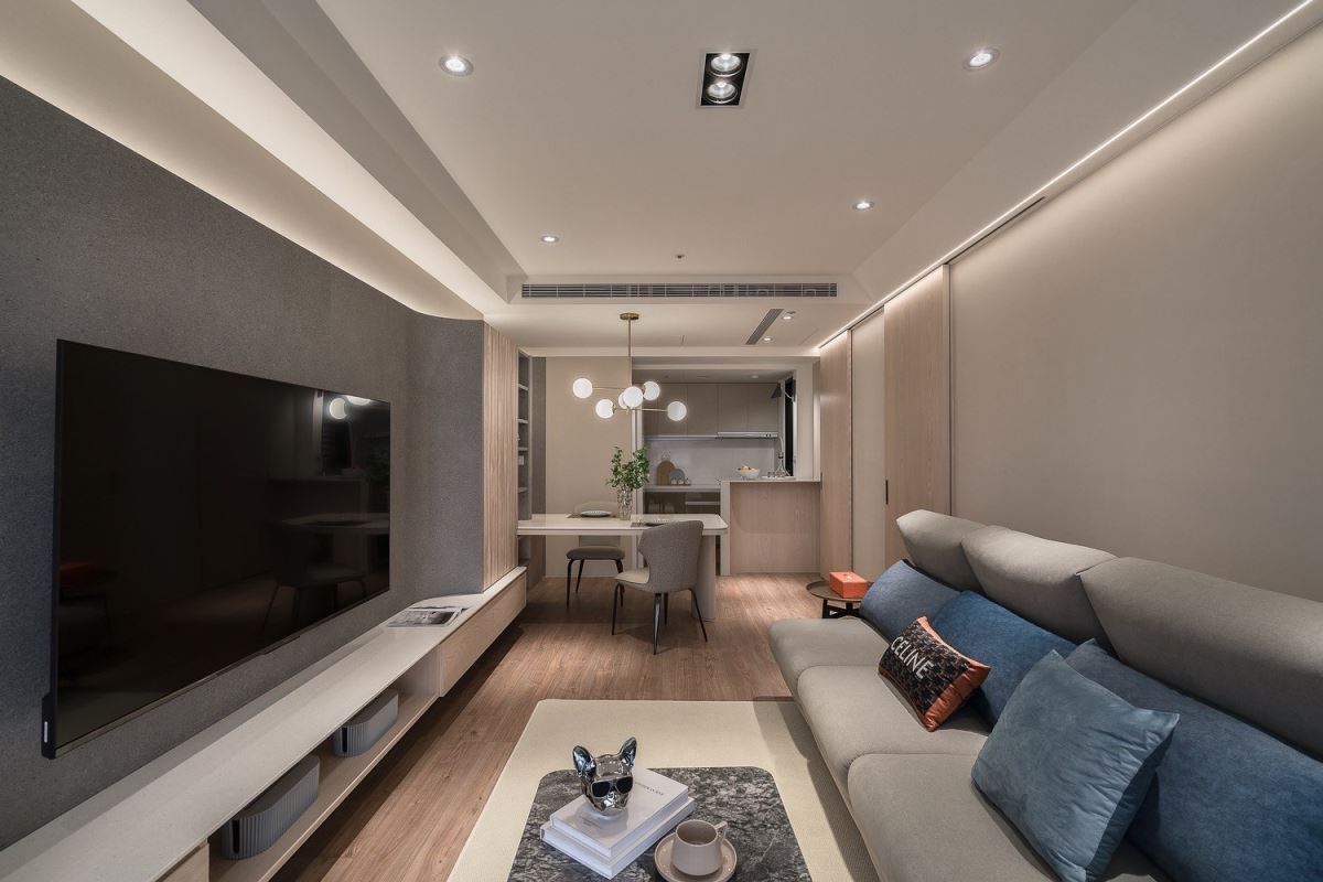 室內14坪空間原屋況收納不足、廊道狹窄無鞋櫃且具風水疑慮,設計師從毛胚屋時期著手,一步一步顯現屋主夢想中的輕奢美宅