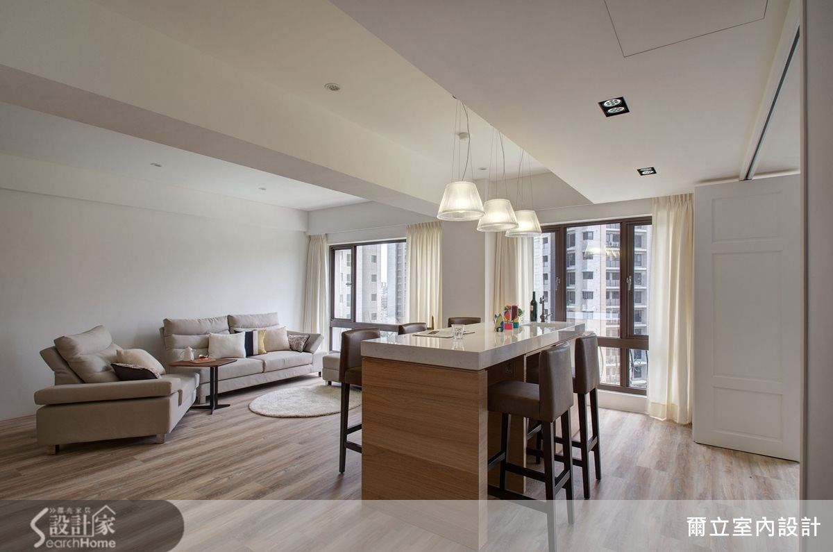 36坪中古屋拆除餐廚隔牆,利用玻璃隔間引入陽光拓展空間,看見與未來另一半同居的美好生活。