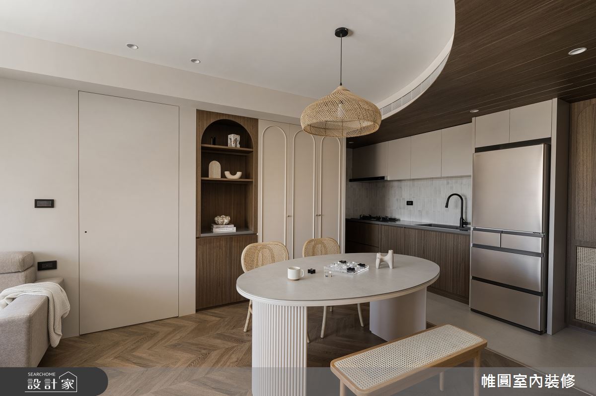 由帷圓‧定制 circle精心規劃的20坪兩房住宅空間。因應屋主需求,設計師運用混搭風作為主軸,搭配實木線板、塗料、木地板、木皮、藤編,打造全家人的夢想家居。