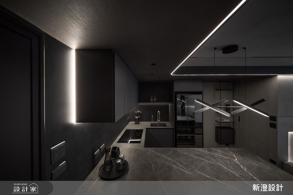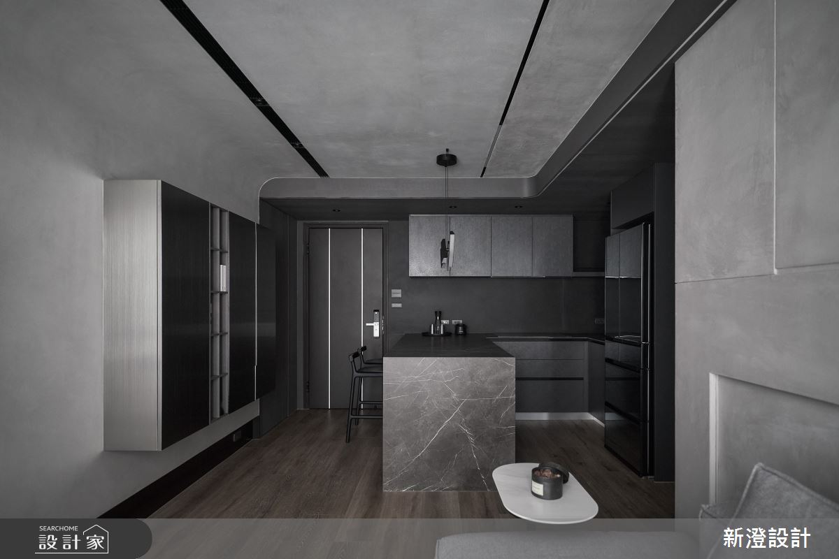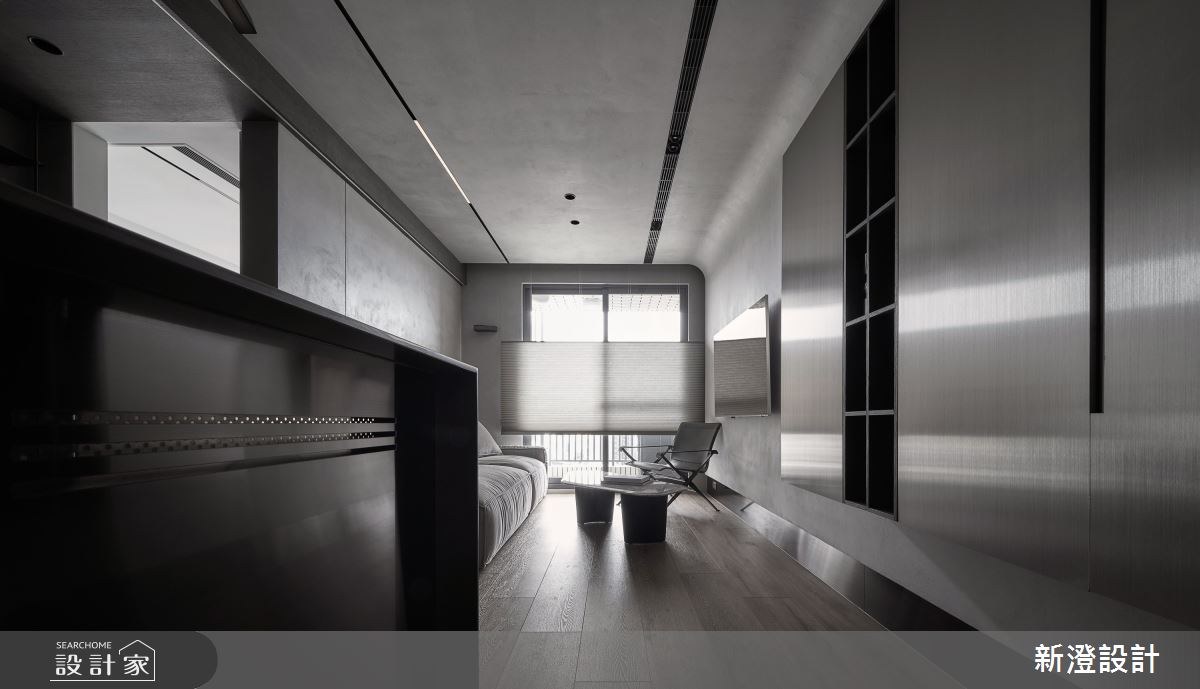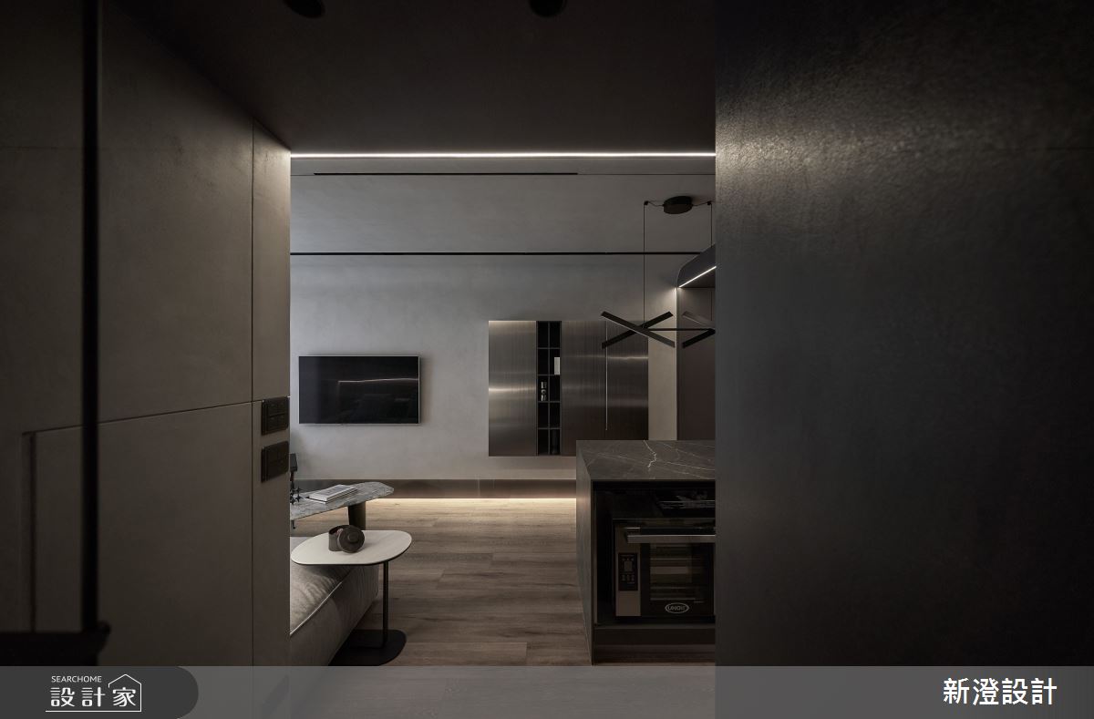 由新澄設計精心規劃的10坪一房住宅空間,家庭成員一共有1位大人。因應屋主需求,設計師運用現代風作為主軸,搭配金屬板、陶板磚、藝術塗料、鈦金,打造一個人的夢想家居。