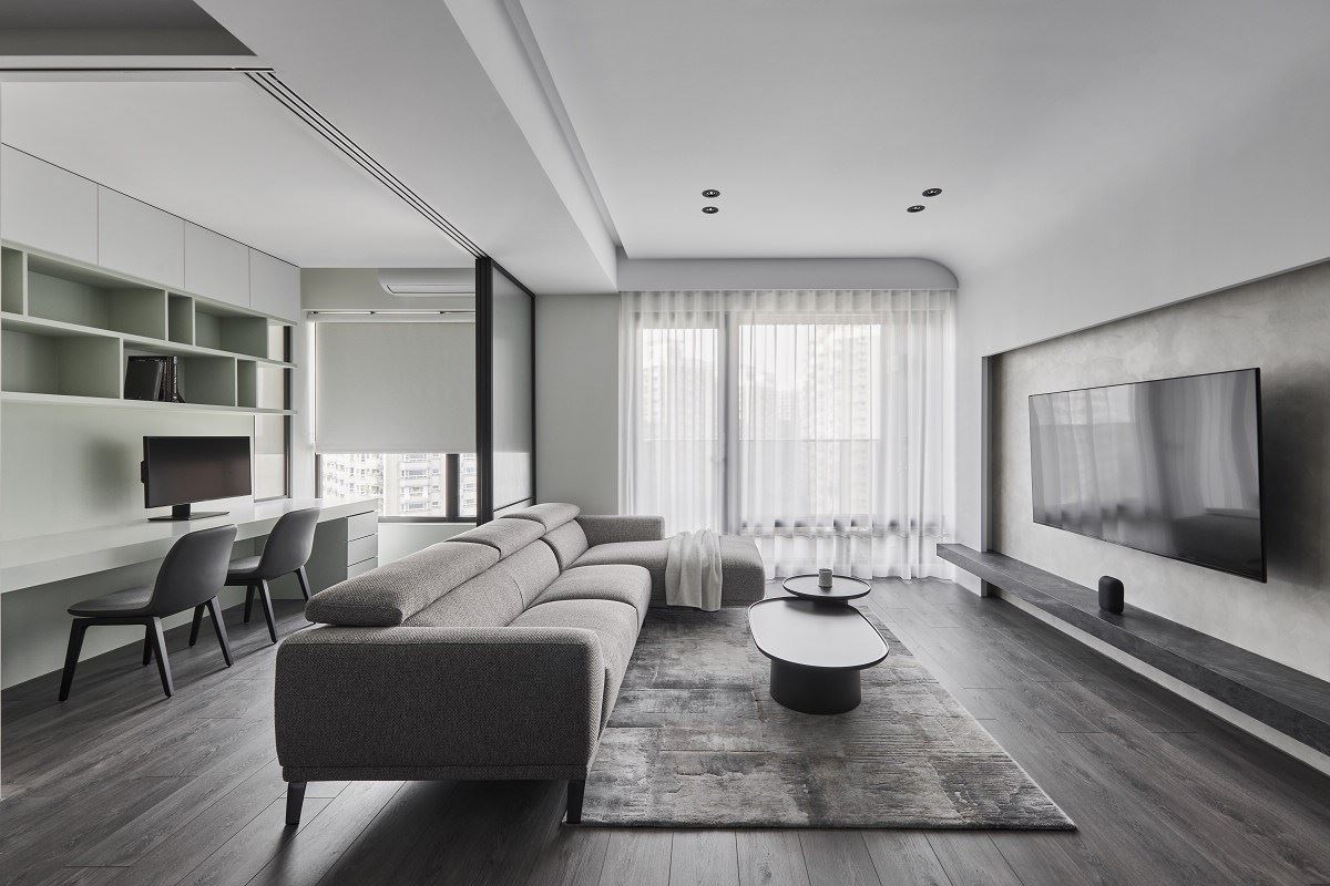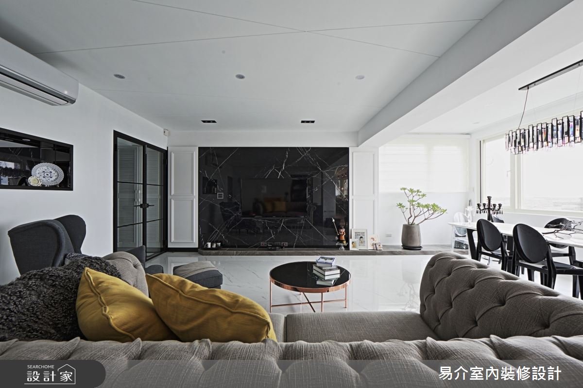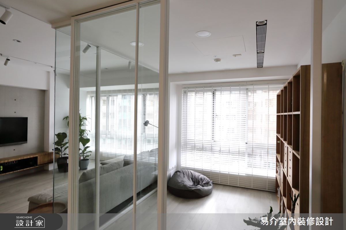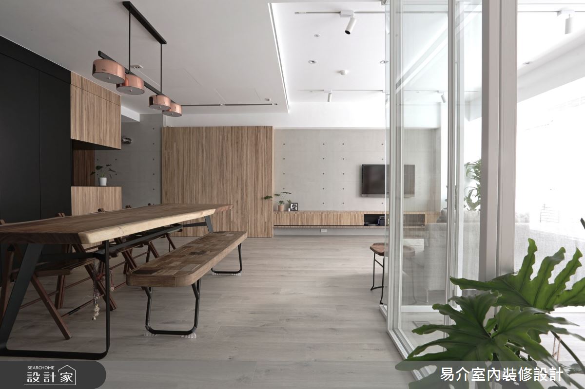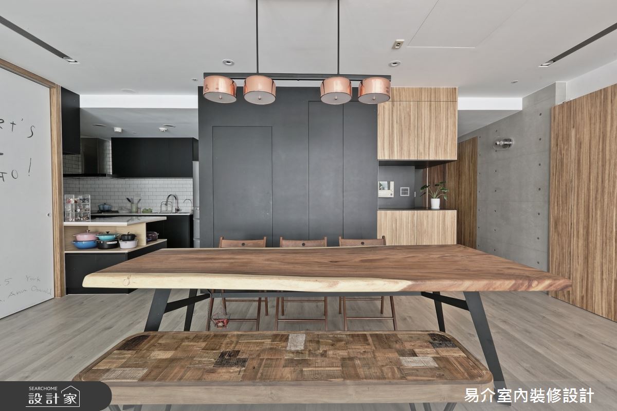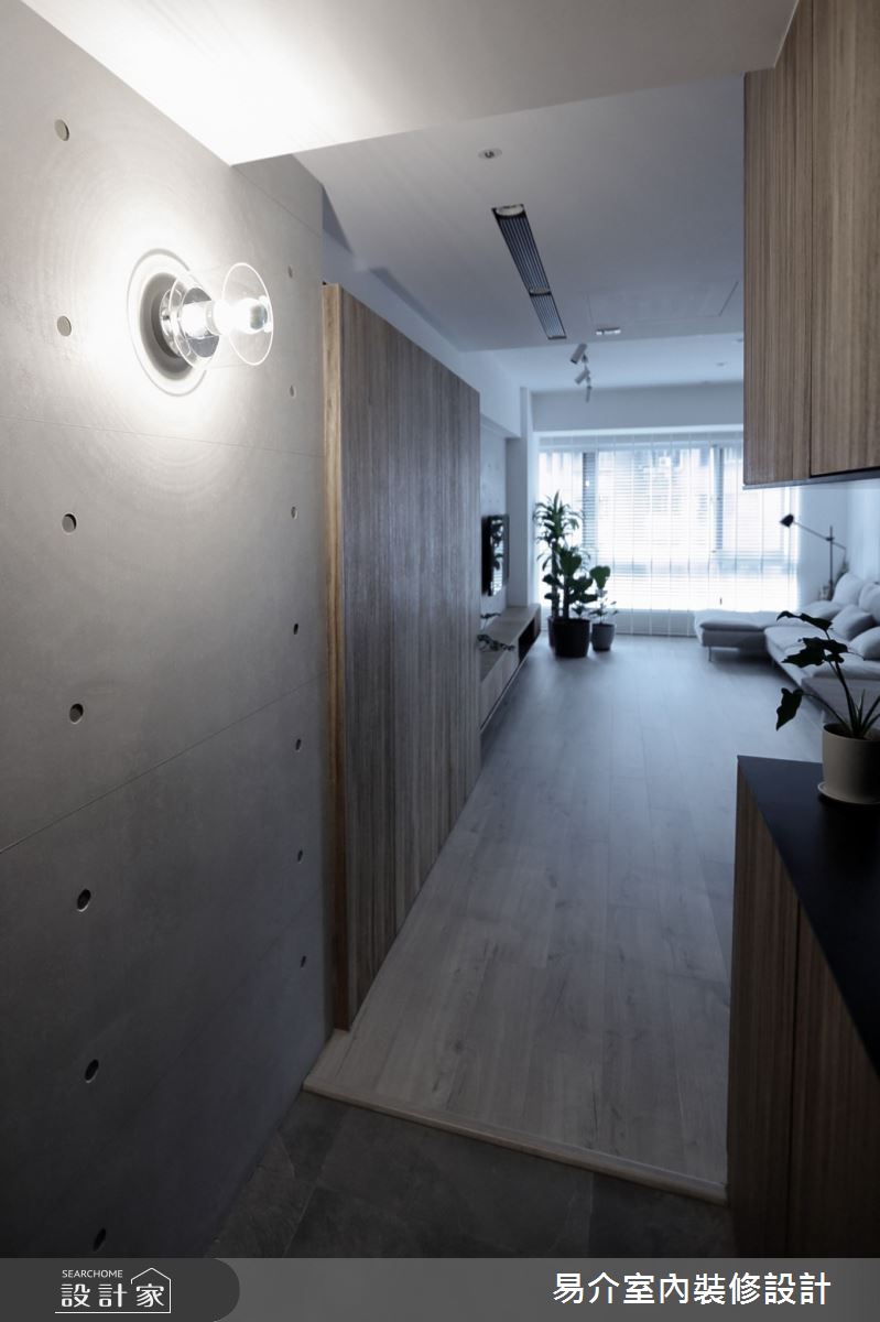 由易介室內裝修設計精心規劃的35坪四房住宅空間,家庭成員一共有2位大人、2位小孩。因應屋主需求,設計師運用現代風作為主軸,搭配乳膠漆、花磚、壁紙、超耐磨木地板、木地板、鐵件、烤玻、木作貼皮、烤漆、水泥/水泥粉光、軌道燈、珪藻土,打造全家人的夢想家居。
