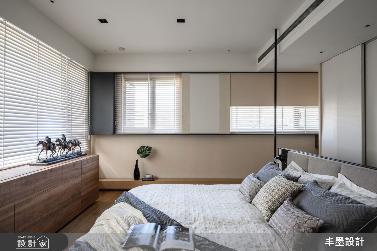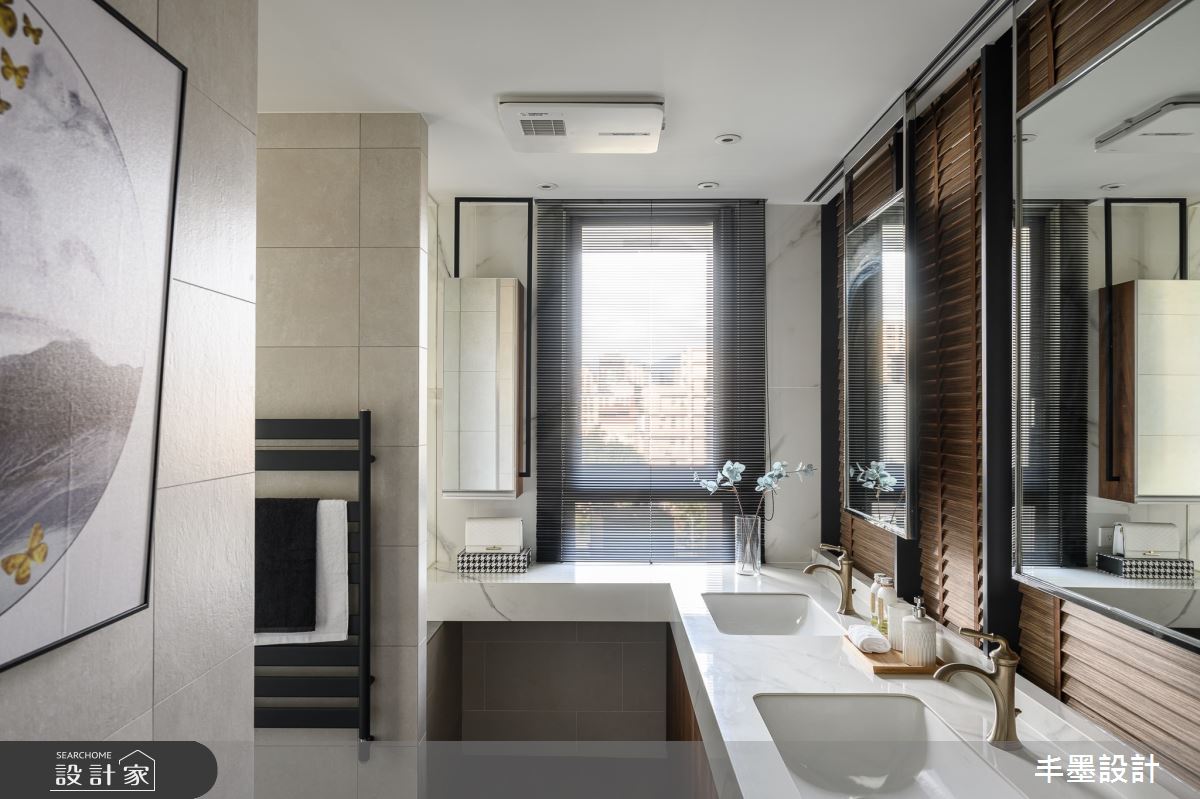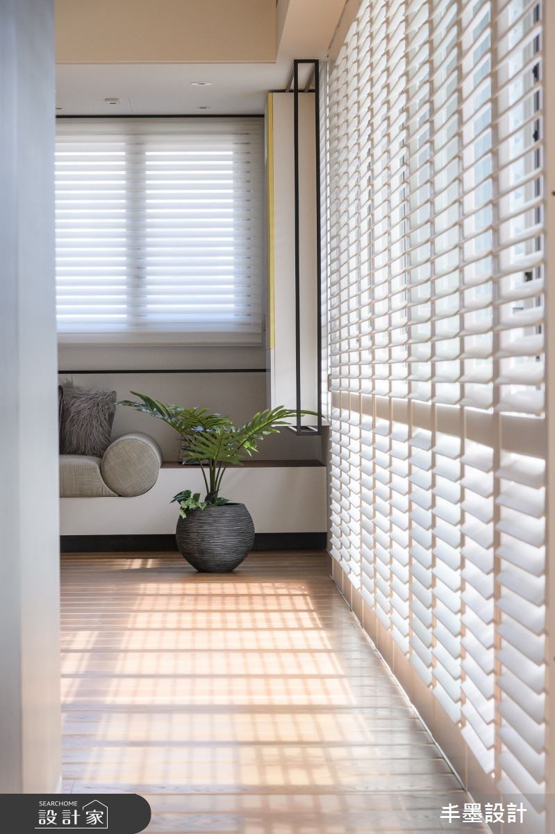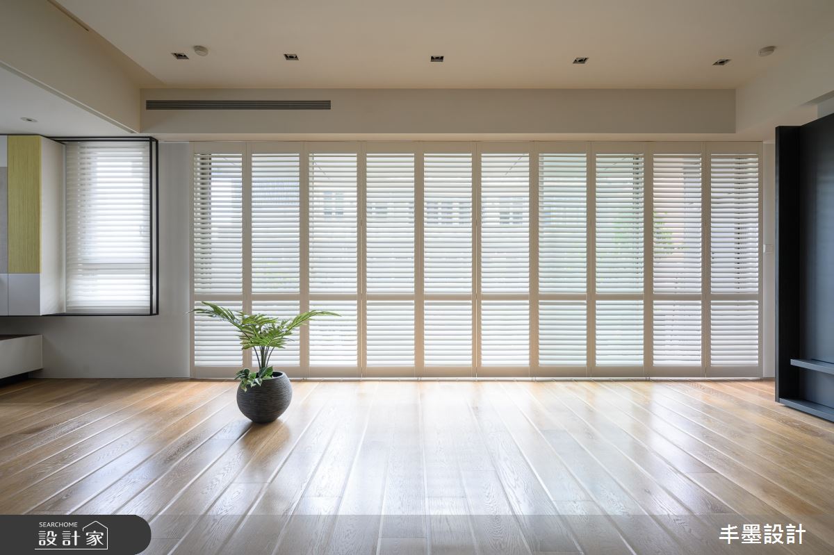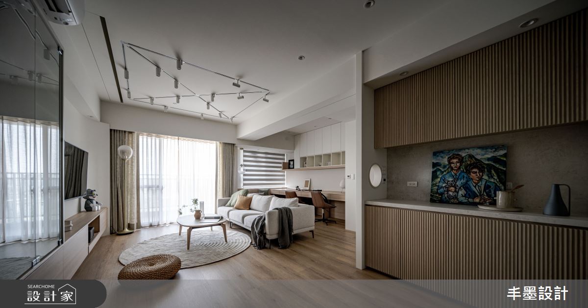 本案為丰墨設計的56坪現代風新成屋(5年以下)設計作品,格局為單層四房的居住空間。全室建材的搭配,應用鐵件、木百葉、沃克板、特殊漆、馬賽克磚,展現溫馨的居家氛圍。