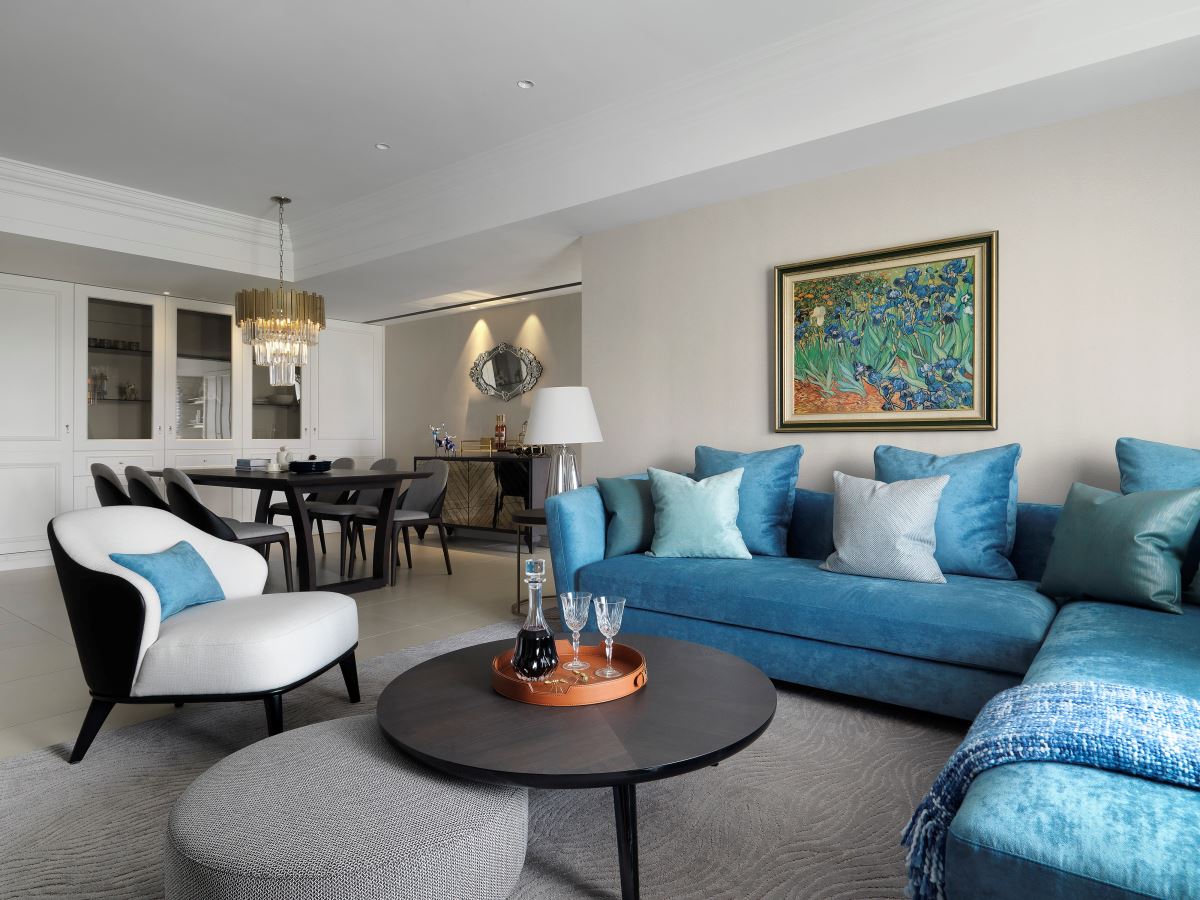 來自成綺空間設計的75.89坪奢華風住宅案,屋主一家人共有2位大人、1位小孩,是一間單層新成屋(5年以下)的三房格局,設計師藉由建材以線板、灰鏡、鍍鈦金屬、烤漆、石材、木地板、壁紙的搭配應用,實現一家人的理想生活。