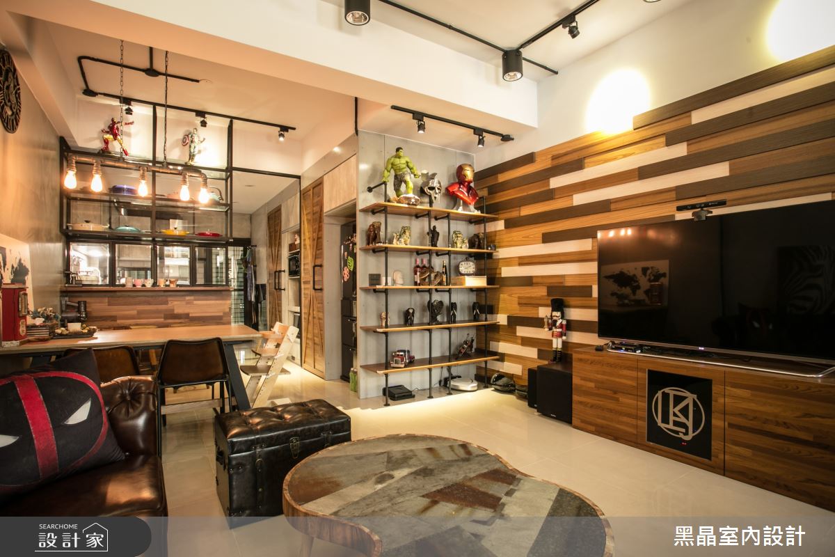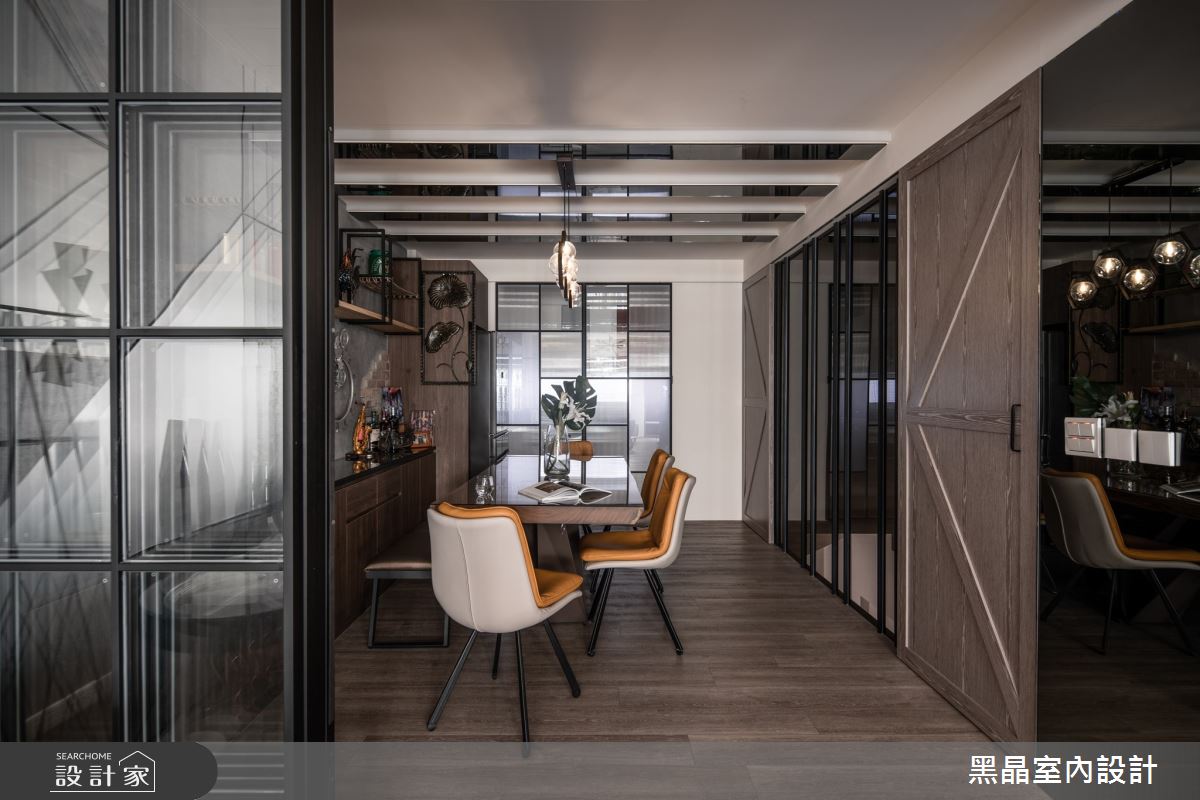 來自黑晶室內設計的75坪混搭風住宅案,是一間透天別墅老屋(16~30年)的四房格局,設計師藉由建材以鐵件、磁磚、金屬板、SPC地板、實木皮、榖倉門的搭配應用,實現一家人的理想生活。