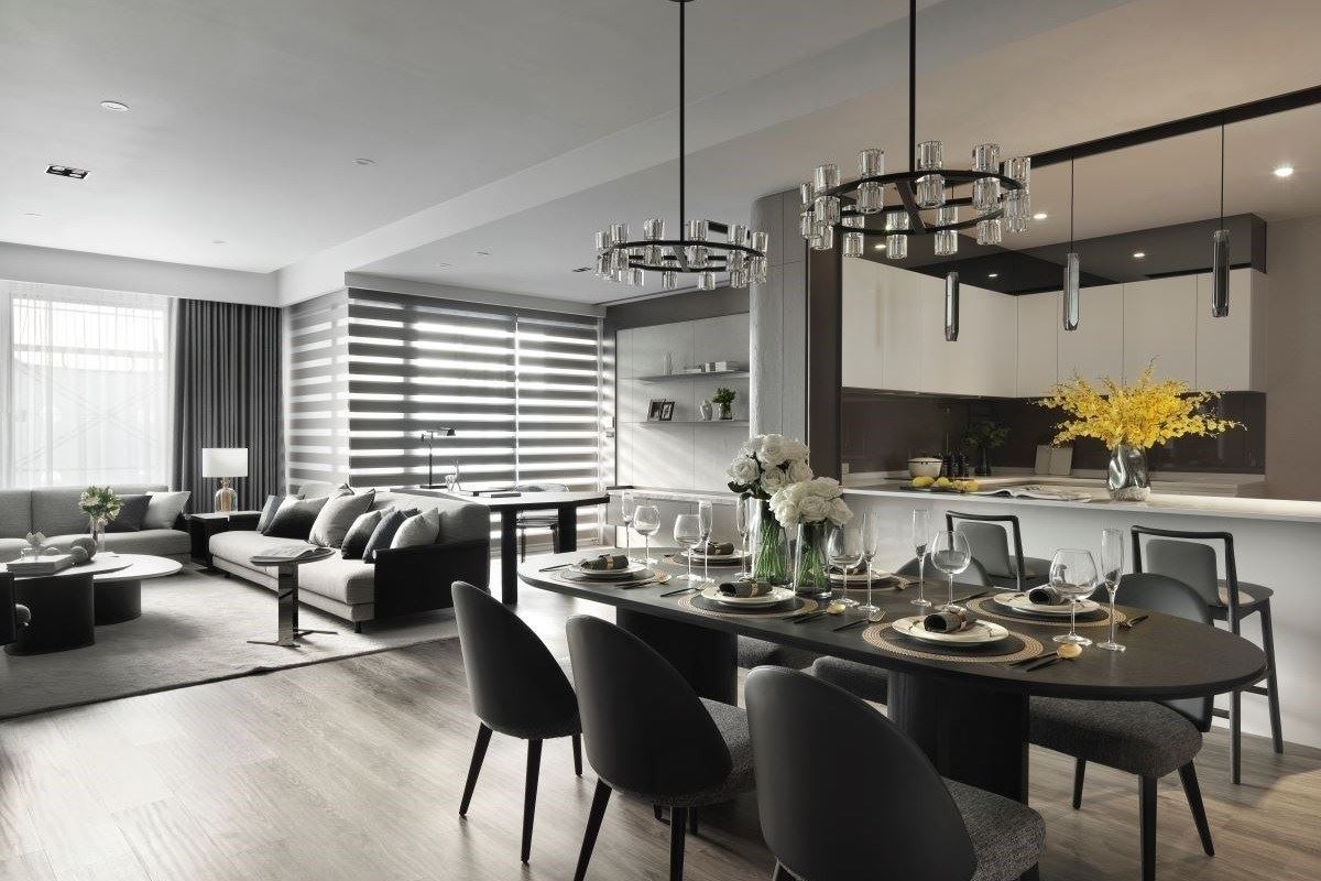 41坪現代風將空間尺度放到最大,收納統一收整於牆邊,創造開闊的公領域,讓一家人不論在哪個角落,都能毫無阻礙的互動交流,切中現代人們生活所需