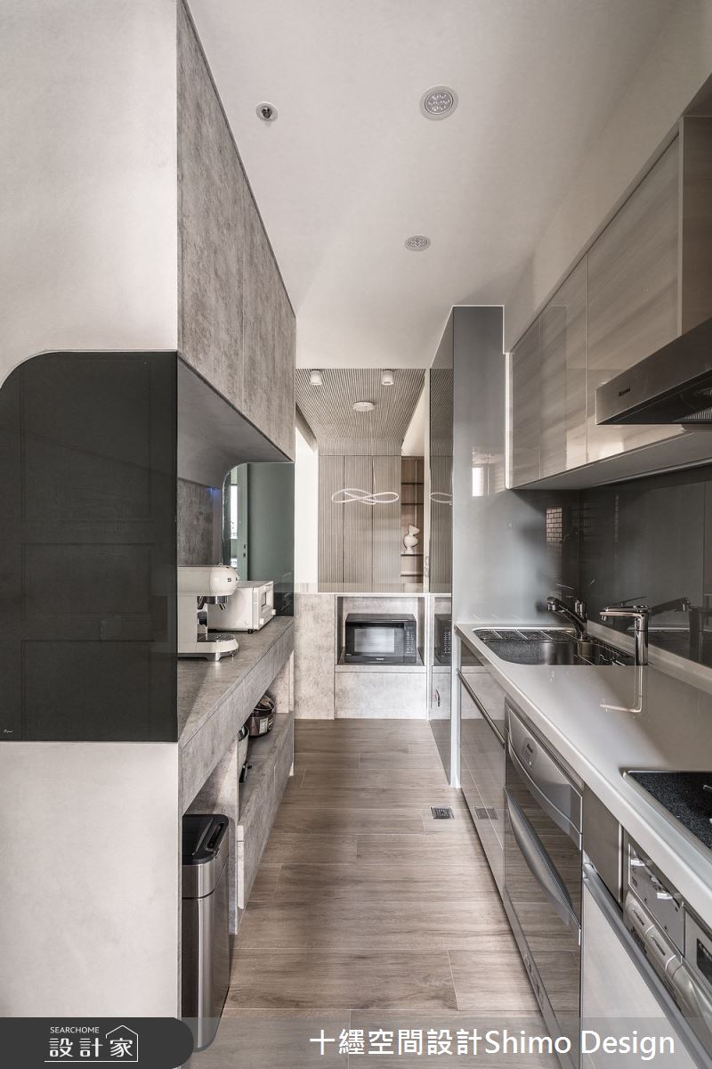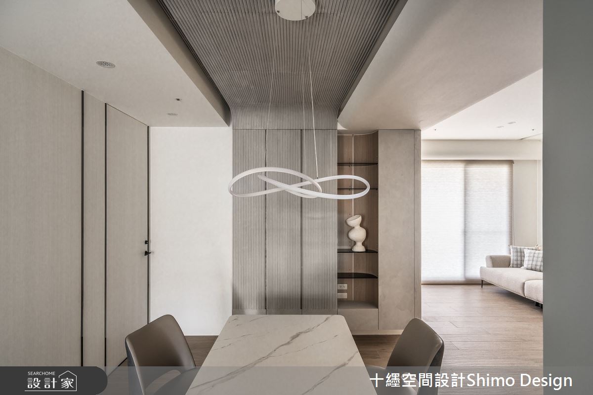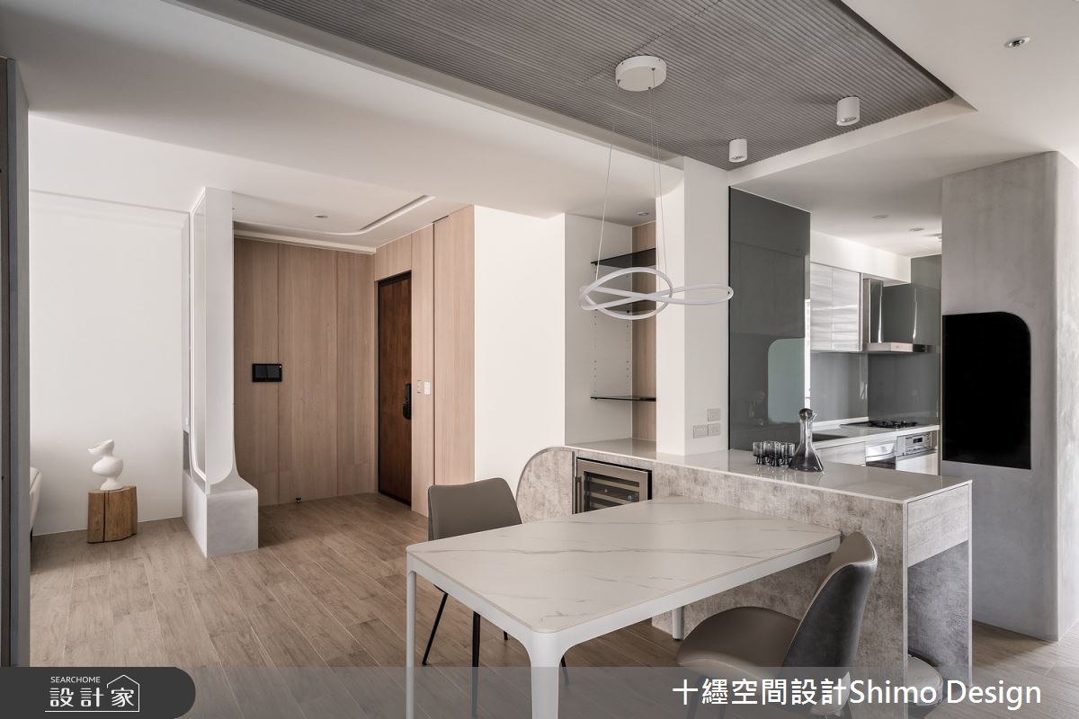 由十纆室內裝修設計有限公司精心規劃的42坪三房住宅空間,家庭成員一共有2位大人、1位小孩。因應屋主需求,設計師運用混搭風作為主軸,搭配乳膠漆、木紋磚、鐵件、灰鏡、木作貼皮、烤漆、系統板材、人造石、繃布、線板、藝術塗料,打造全家人的夢想家居。