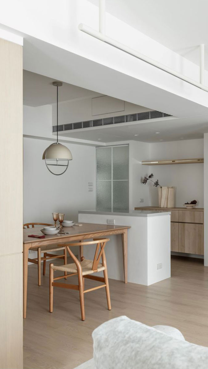 由成境設計精心規劃的26坪兩房住宅空間,家庭成員一共有2位大人。因應屋主需求,設計師運用北歐風作為主軸,搭配乳膠漆、木地板、鍍鈦金屬、木作貼皮、樂土、木百葉、人造石、軌道燈、噴漆、長虹玻璃,打造全家人的夢想家居。