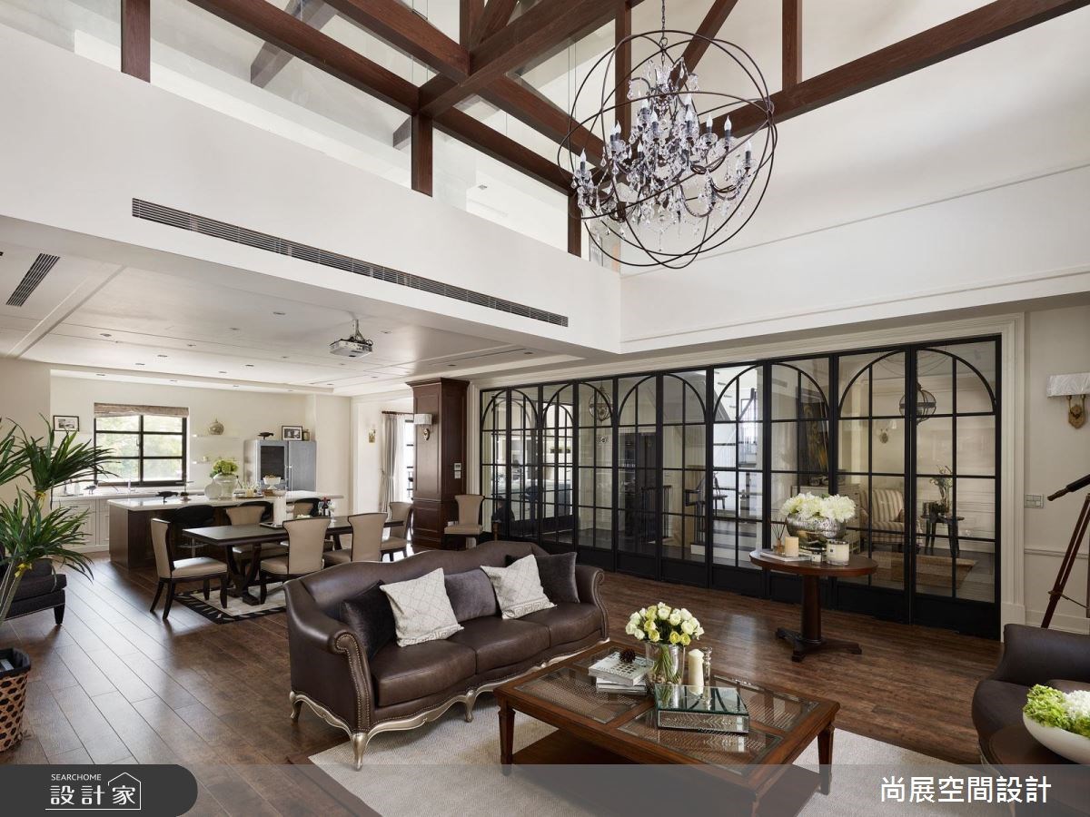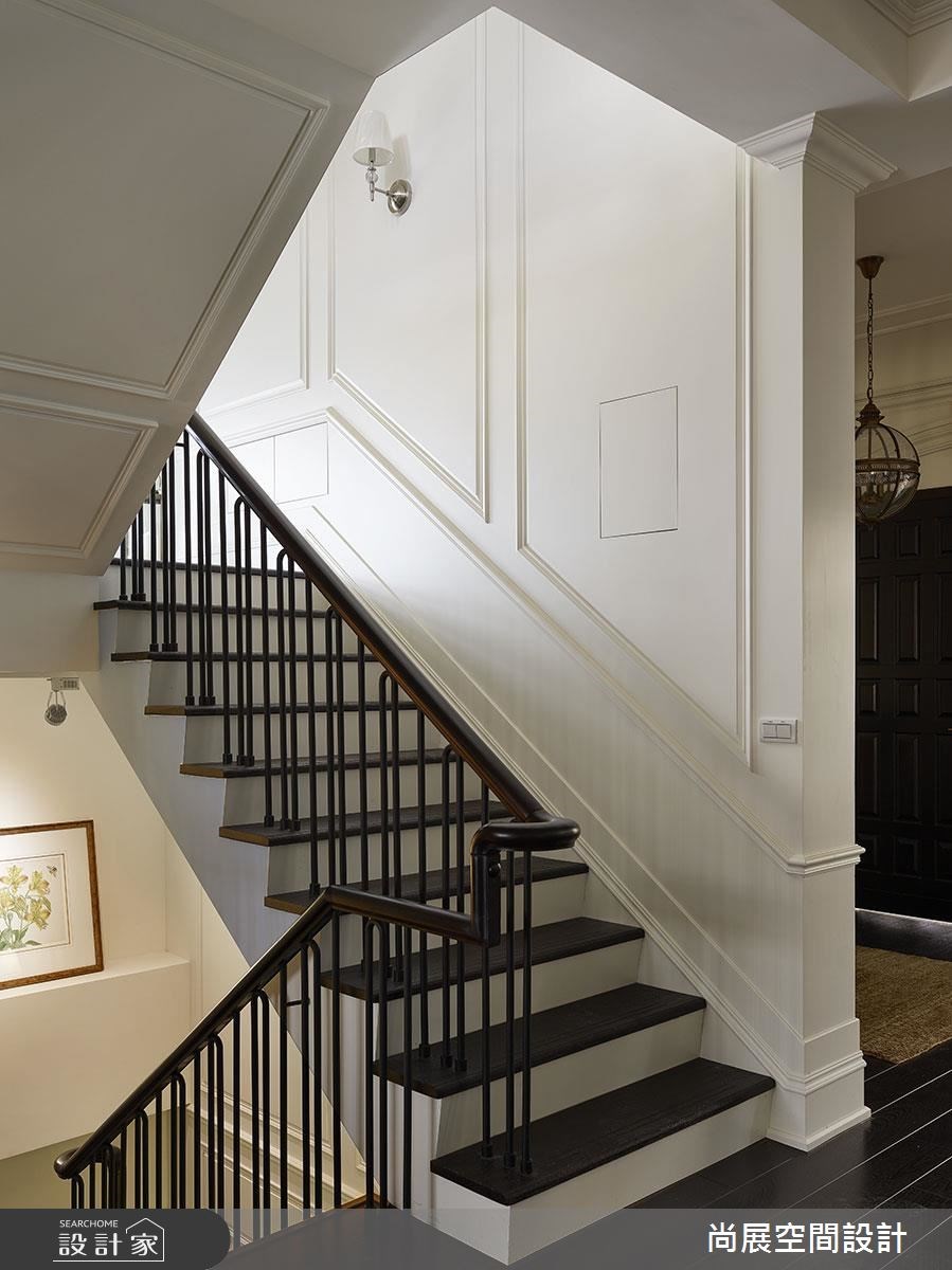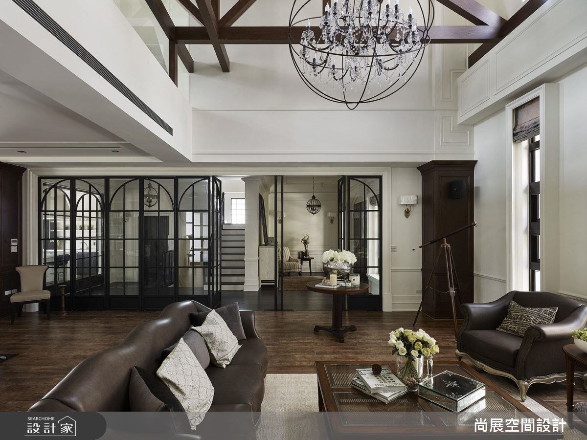 180 坪的別墅大宅,設計師藉由挑高寬敞的空間優勢,搭配經典美式風韻,讓居家氛圍充滿故事性與感情,勾勒出有如歐美影集般的動人畫面,快跟著小編一起來看看吧! 步入玄關,設計師為了緩解穿堂問題,將隔間全數打開,透過鐵件玻璃拉門與開放格局的規劃,讓客餐廳之間彼此通透,促進日光的肆意流動,並於門片加入流線語彙,延伸出柔美優雅的弧度,間接強調整體的挑高感受;客廳則運用格局優勢建構屋架系統,以沉穩木色呼應同色木地坪,再配置雅致壁爐創造美式風情,營造閒適度假的氛圍;餐廚領域則依循居住需求,細心地分配出輕食與熟食區,並給予互動性極佳的開放情境,廚房上方加入台灣少見的白色油煙罩,結合木作斜天花設計,呈現歐美大宅的經典視野,佐以窗邊的陽光及綠意,打造出夢想中的作菜場景! 小編的最愛 樓梯地帶,設計師為呼應一樓的鐵件門片,延續相同的材質元素,透過細長的比例、漂亮的疏密層次導引向上動線,將美式風格演繹得更臻完美!
