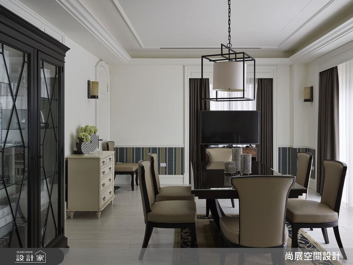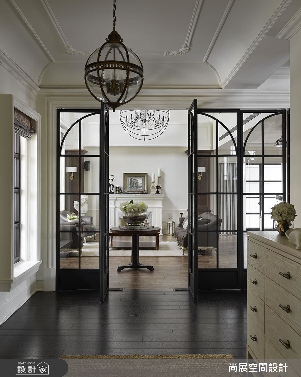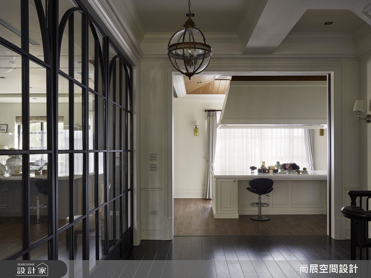 180 坪的別墅大宅,設計師藉由挑高寬敞的空間優勢,搭配經典美式風韻,讓居家氛圍充滿故事性與感情,勾勒出有如歐美影集般的動人畫面,快跟著小編一起來看看吧! 步入玄關,設計師為了緩解穿堂問題,將隔間全數打開,透過鐵件玻璃拉門與開放格局的規劃,讓客餐廳之間彼此通透,促進日光的肆意流動,並於門片加入流線語彙,延伸出柔美優雅的弧度,間接強調整體的挑高感受;客廳則運用格局優勢建構屋架系統,以沉穩木色呼應同色木地坪,再配置雅致壁爐創造美式風情,營造閒適度假的氛圍;餐廚領域則依循居住需求,細心地分配出輕食與熟食區,並給予互動性極佳的開放情境,廚房上方加入台灣少見的白色油煙罩,結合木作斜天花設計,呈現歐美大宅的經典視野,佐以窗邊的陽光及綠意,打造出夢想中的作菜場景! 小編的最愛 樓梯地帶,設計師為呼應一樓的鐵件門片,延續相同的材質元素,透過細長的比例、漂亮的疏密層次導引向上動線,將美式風格演繹得更臻完美!