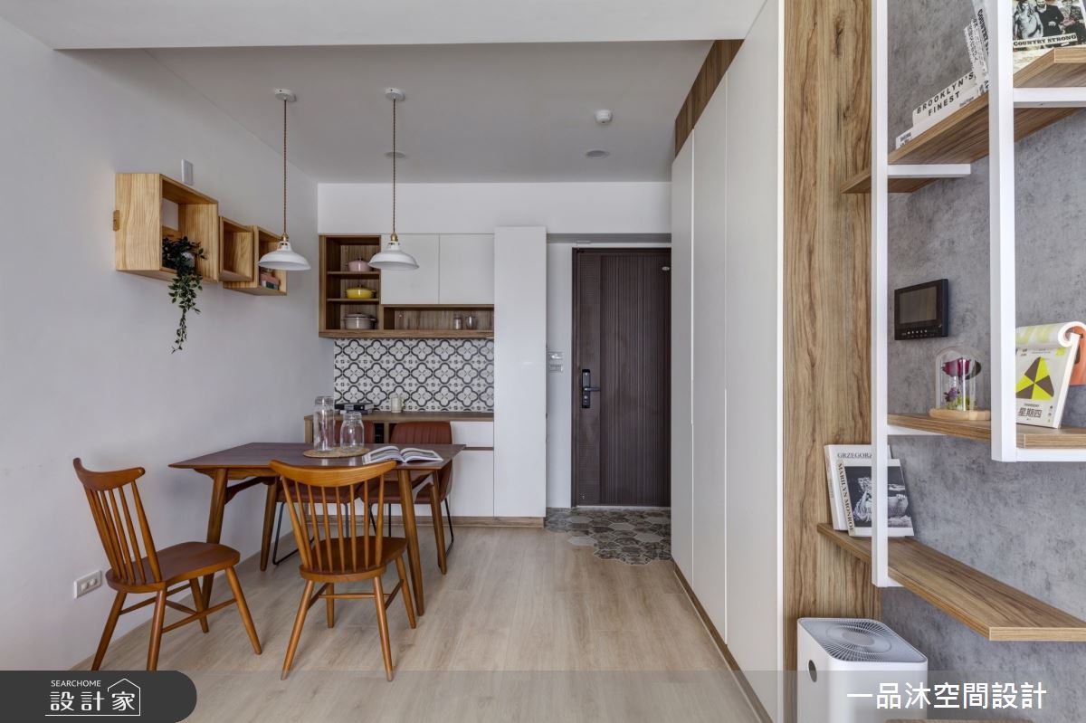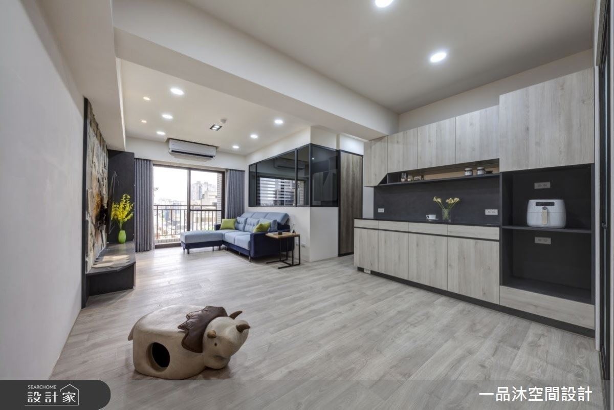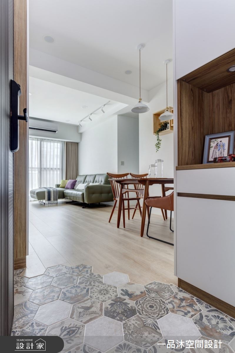 本案為一品沐空間設計的18坪現代風新成屋(5年以下)設計作品,格局為單層三房的居住空間。居住成員包含2位大人、1位小孩。全室建材的搭配,應用油漆、六角磚/蜂巢磚、花磚、超耐磨木地板、鐵件、系統板材,展現溫馨的居家氛圍。