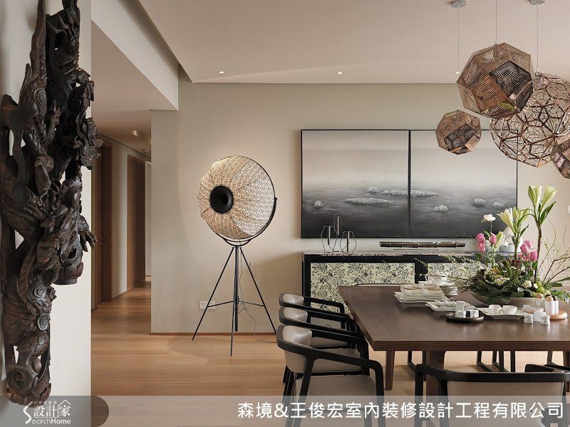 軟裝佈置,對空間影響甚鉅,對岸精裝的高樓層現代宅邸,透過森境&王俊宏設計縝密的美形軟裝規劃,竟能展現白居易詩作「中隱」描...