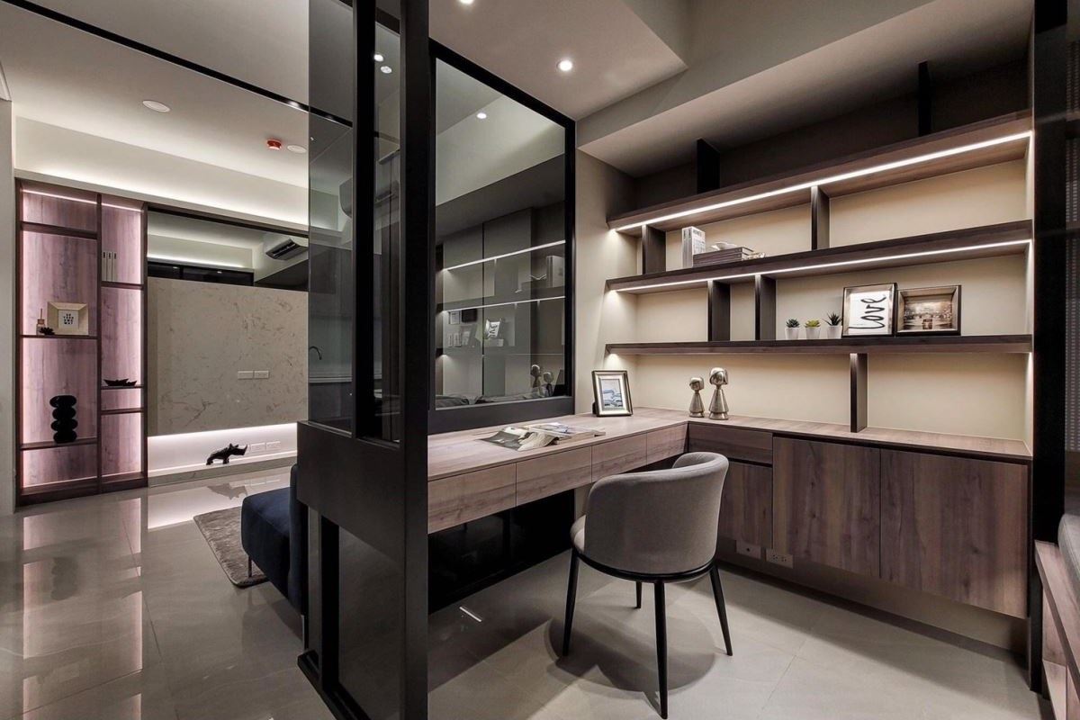 2+1房的格局配置上,運用茶玻打造通透隔間,貼牆與懸浮收納設計,讓18坪預售屋住...