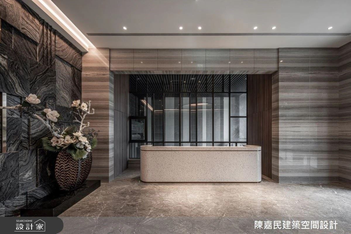 此案為腹地寬廣的350坪建案公設,陳嘉民建築空間設計 在空間內選用天然材質與窗外...
