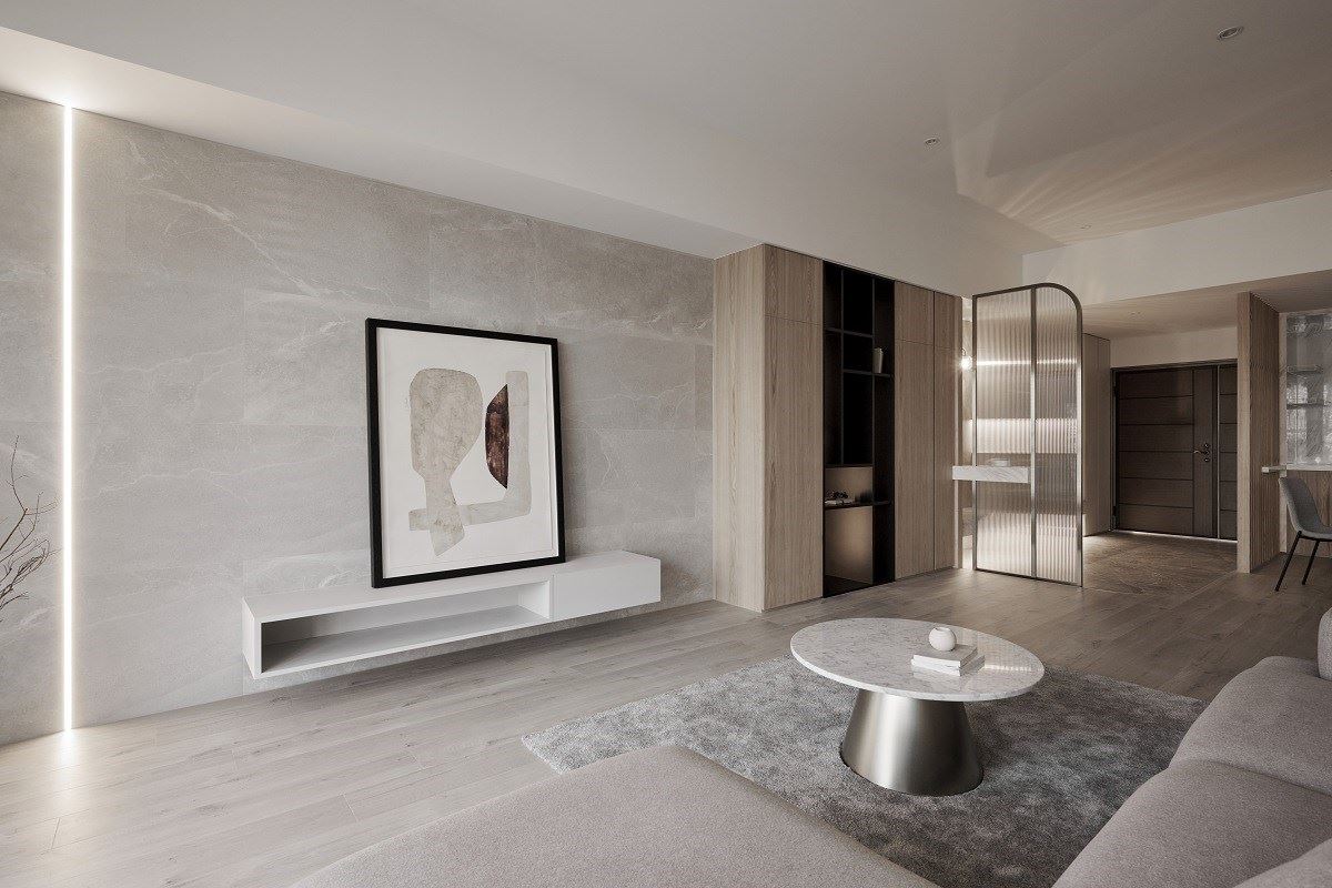 張智傑 設計師以純淨色彩與粗獷肌質,鋪敘空間簡練的特質,在本案中捨棄過多色彩,以...
