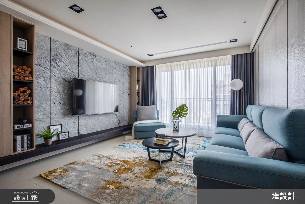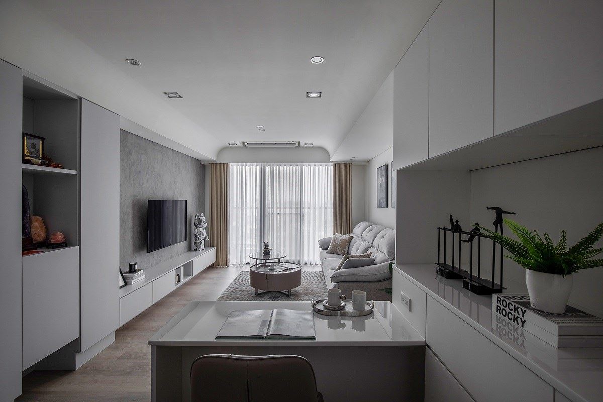 房屋權狀41.6坪空間以弧形修飾空間銳角,以光滑烤漆材質取代木質,搭配客製化色調...