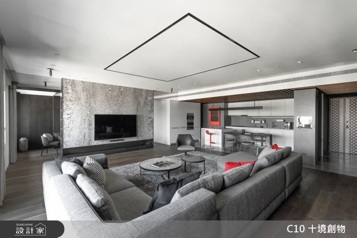 事隔 13 年再次請託十境創物規劃的居宅,褪去繁複的色彩與結構裝飾,以石材堆疊灰...