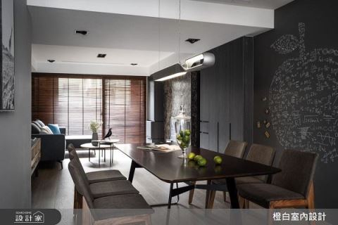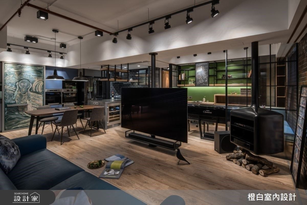 36坪居家,設計師運用灰玻、鐵件烤漆、人造石、跳色漆、美耐板、文化石等建材相互搭...