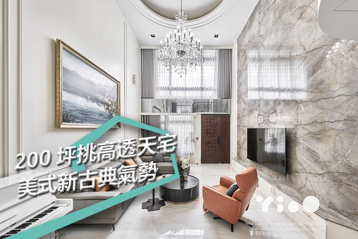 本棟透天別墅在設計之初,考量到如何展現氣派的水晶燈飾,黃淑菁設計師運用新古典交織...