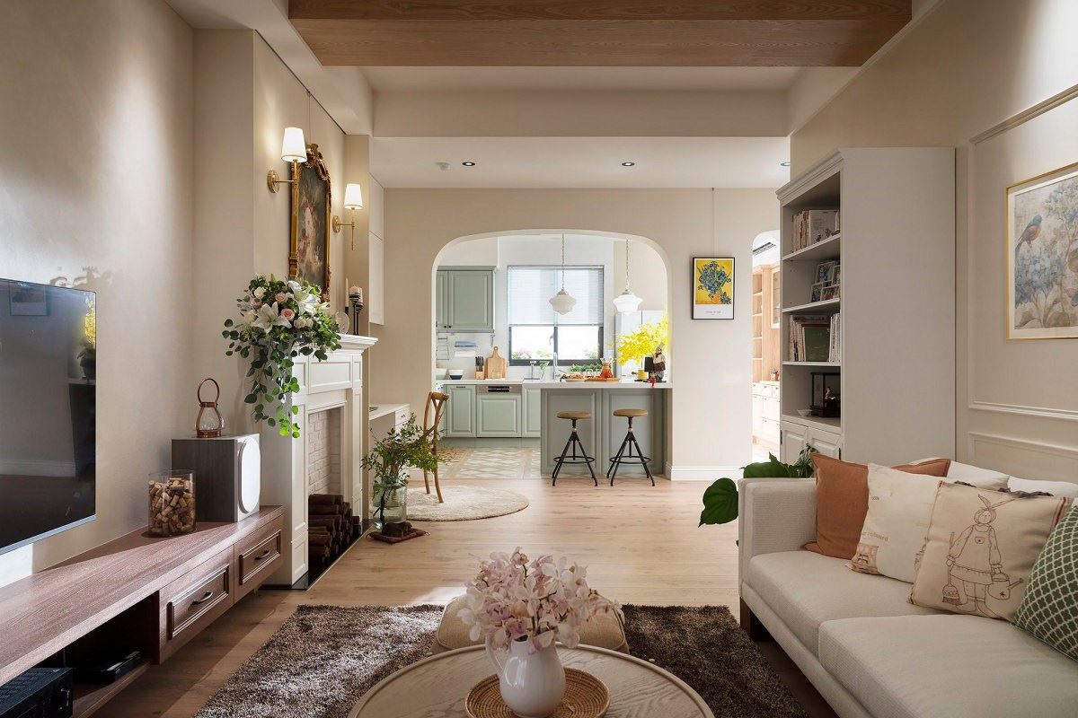 彷彿童話中的宅邸,滿滿的美式風元素,電視牆、餐邊櫃,還有可以滿足聚會下廚的超大開...