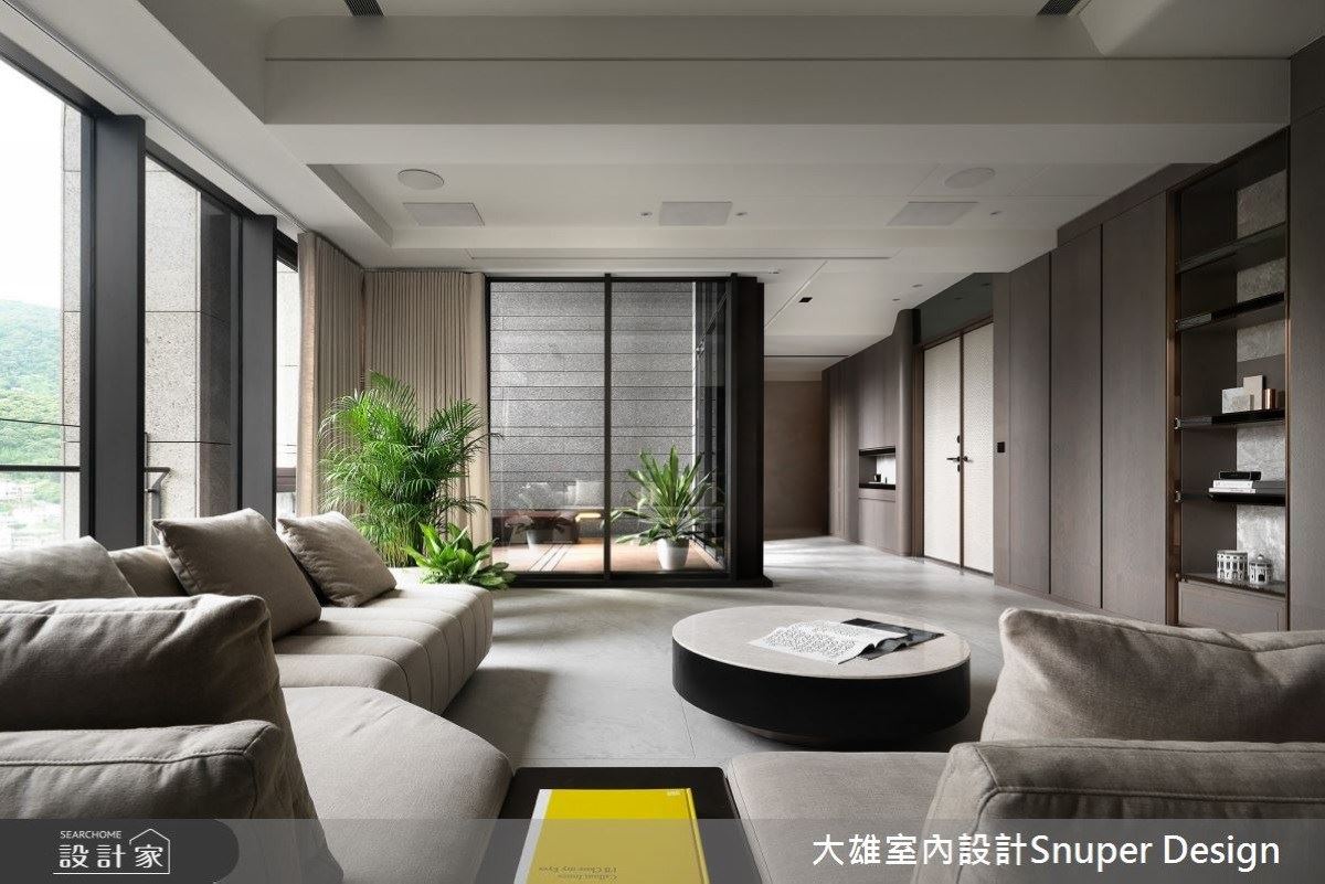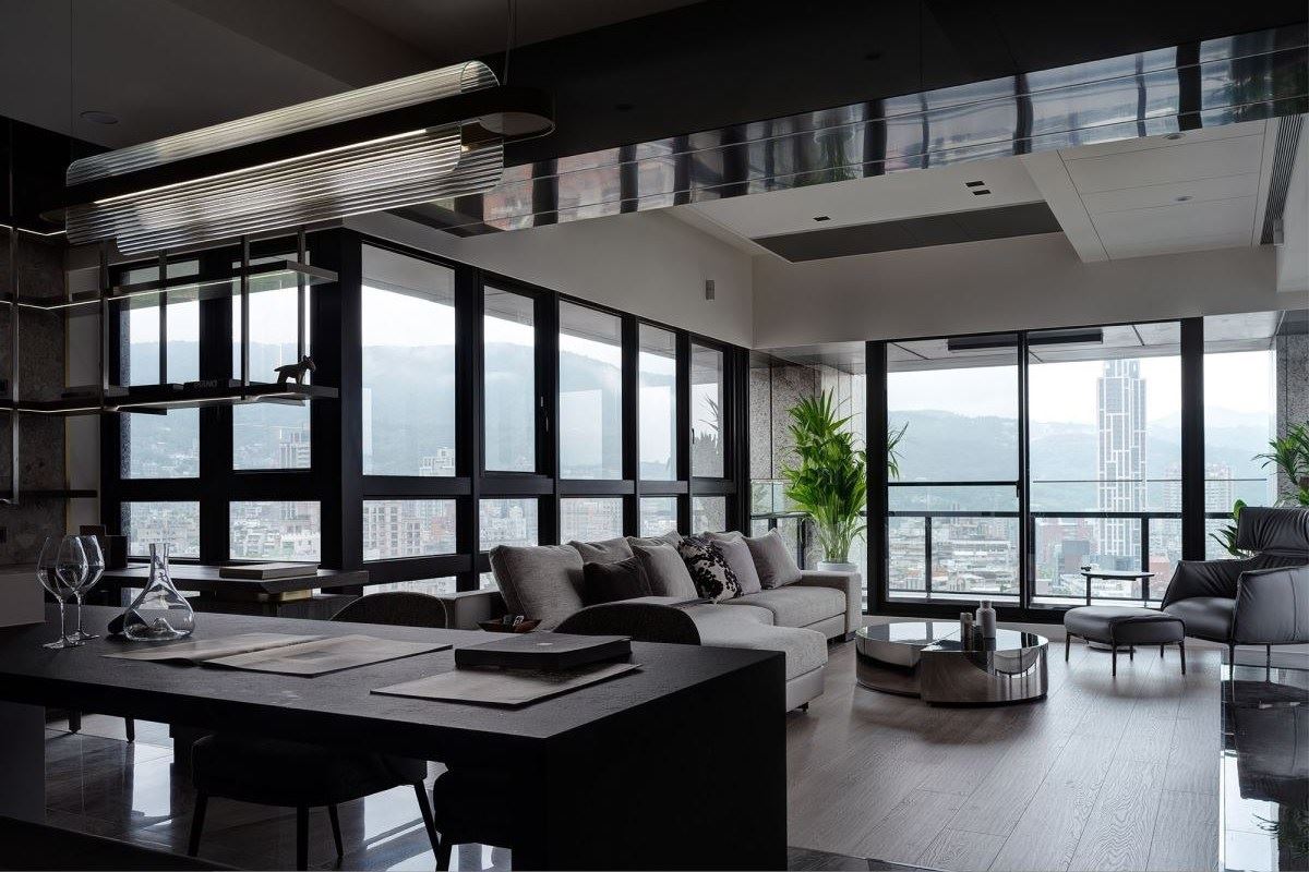 位於高樓層的百坪空間,享受360度的都市美景,林政緯設計師以建築思維與光影敘事手...