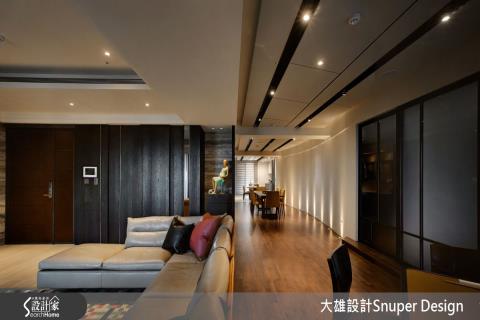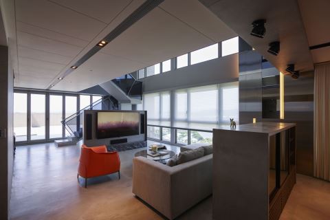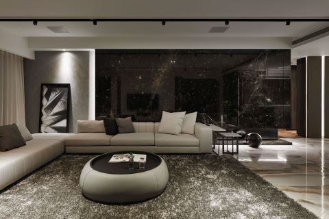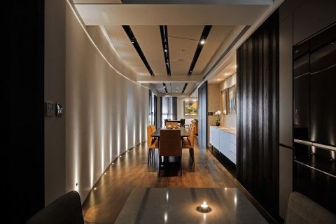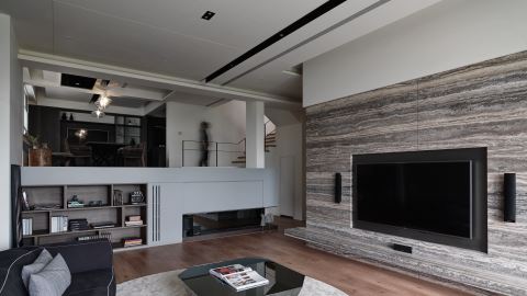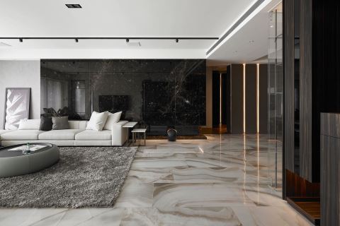 林政緯設計師以Penthouse的改念,從梯間到室內,以不同的石搭配材呈現延續性...