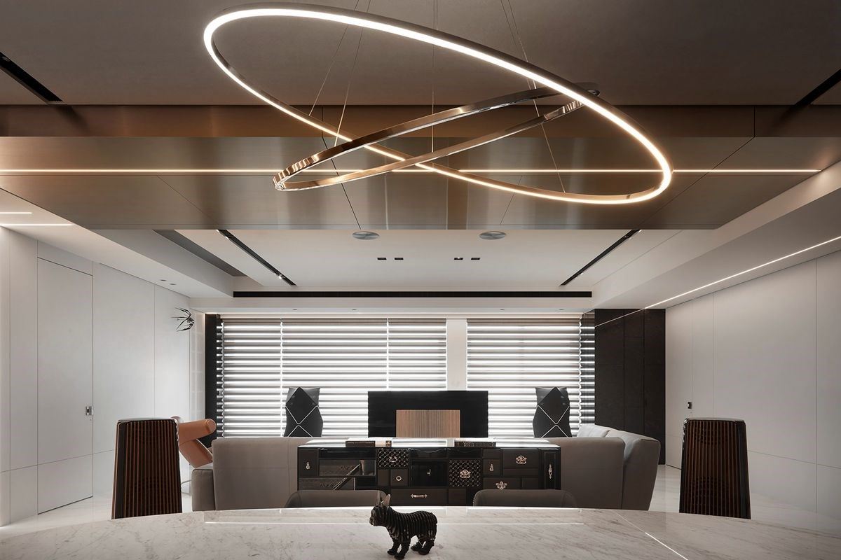 面對90 坪雙層格局,林政緯設計師以現代風格的精髓突顯時尚感,同時整合紳士屋主的...