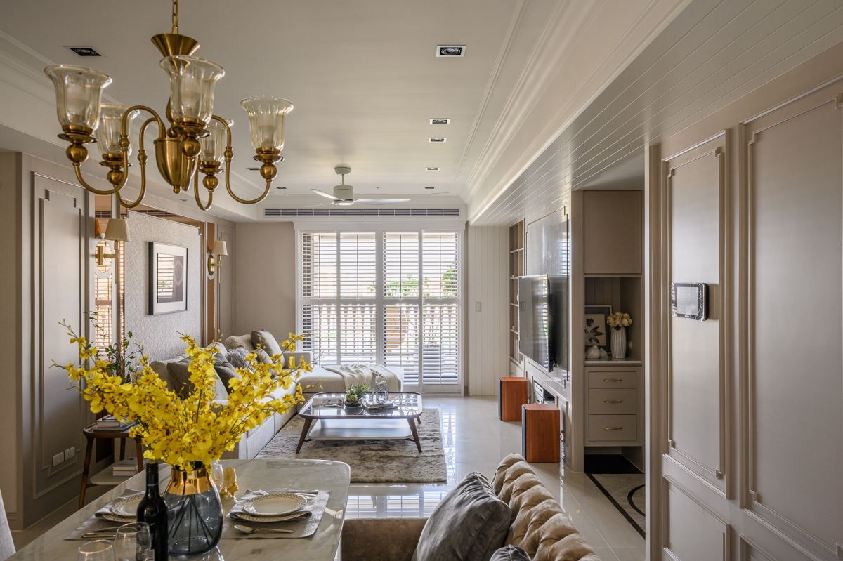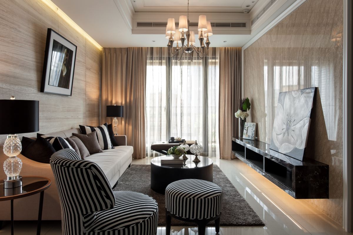 典雅奢華不再是大坪數的權利,侯榮元設計師在28坪的案子中,透過溫暖的色調,及異材...