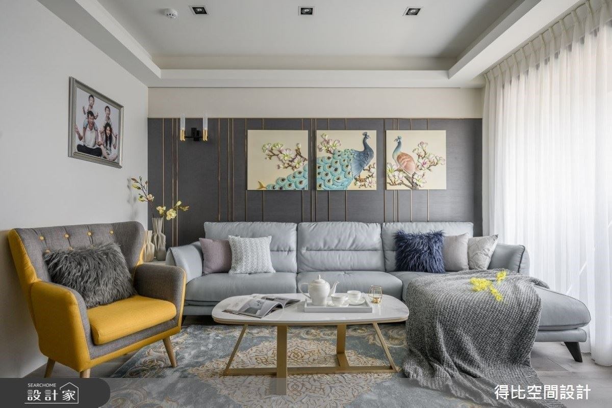 36坪美式新古典風,以溫柔杏調為空間主色,牆面搭佐線板元素,營造出滿室的細膩感與...