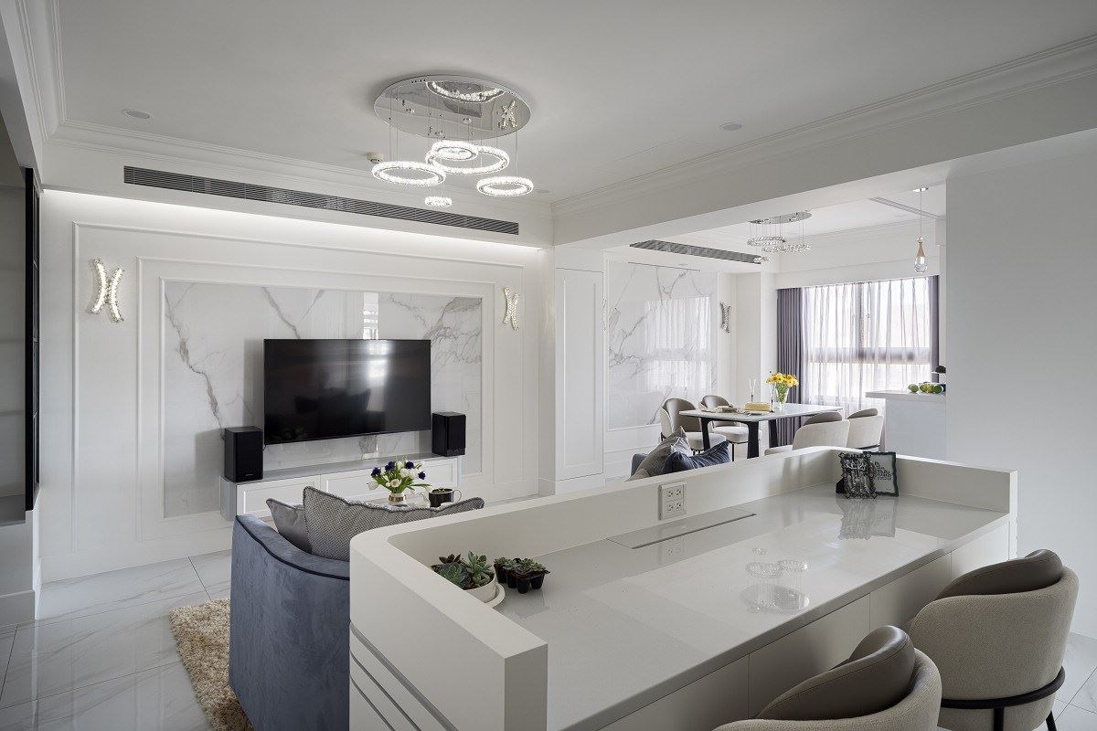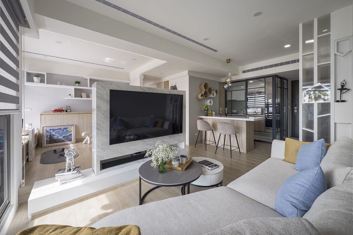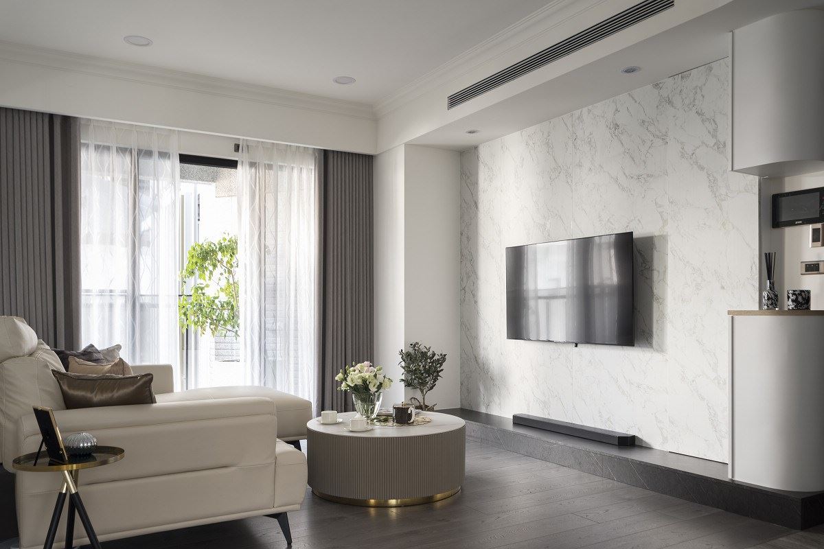 洪華山、張育騰設計師,將千層蛋糕的大理石元素,貫徹家中,透過經典的黑、白、灰三色...
