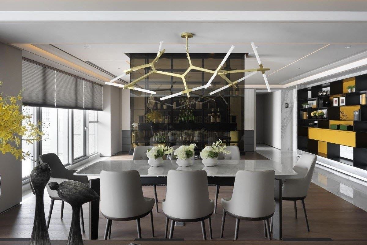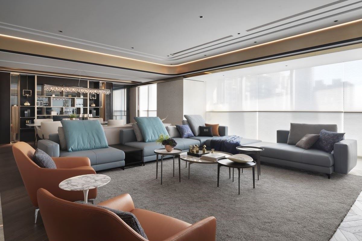 欣磐石建築.空間規劃事務所的羅仕哲設計師,在160坪的現代風豪宅裡,利用大面窗景...