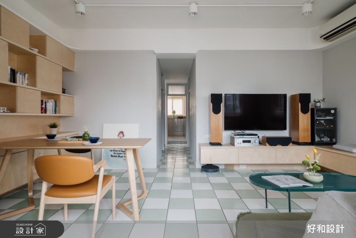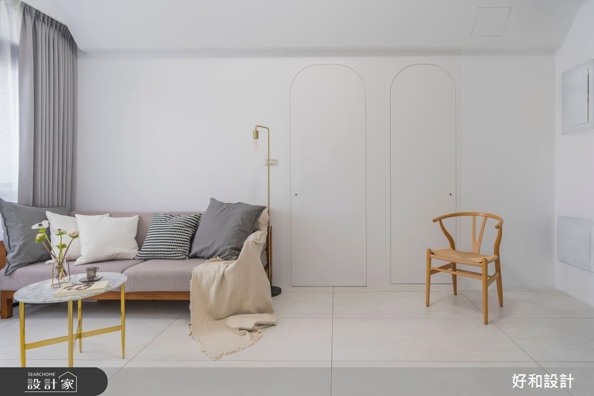 12坪的北歐風居所裡,入住著年輕屋主夫妻與他們的愛狗。好和設計的何佳翰設計師,以...