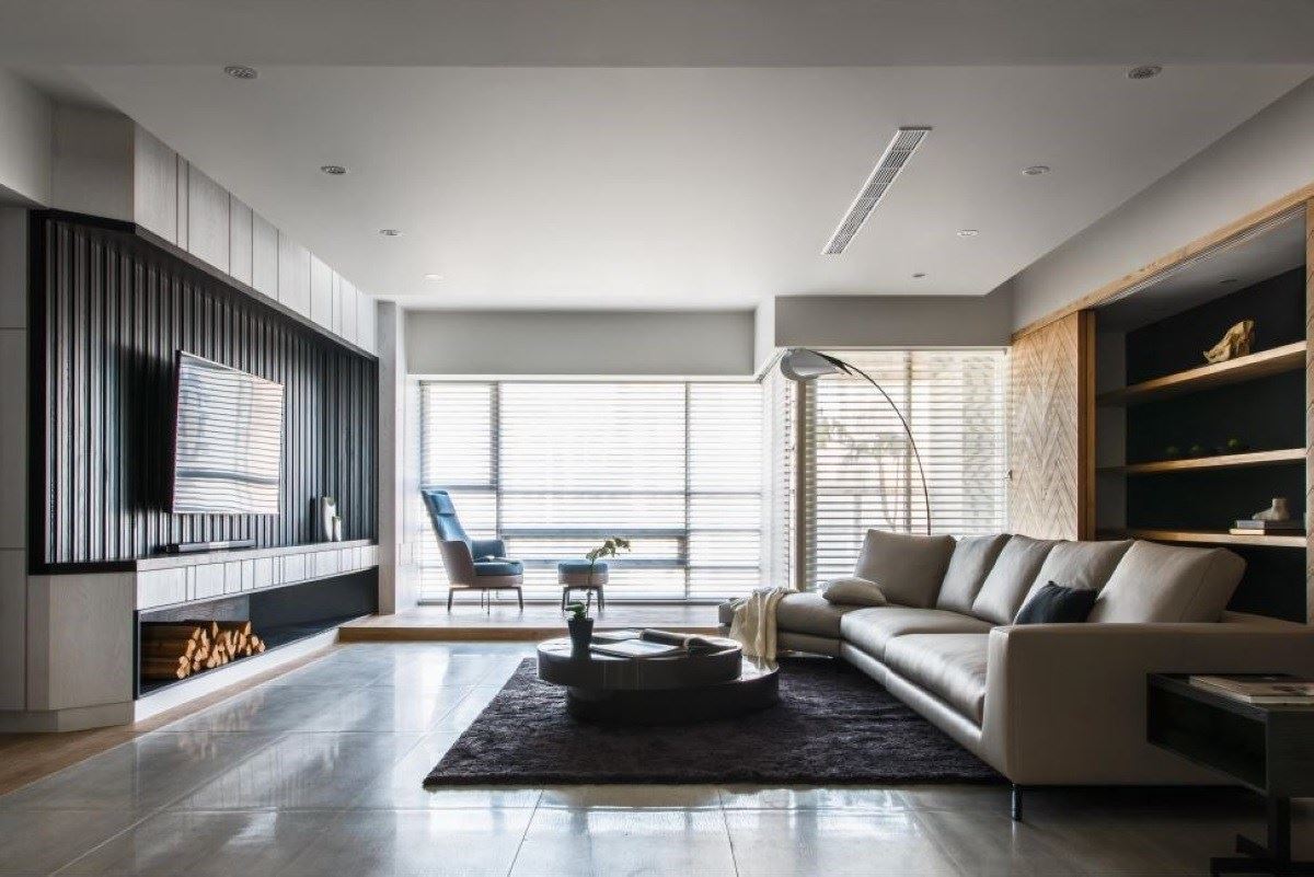 翁嘉鴻設計師以垂直水平線條,整合灰黑色系元素及自然肌理,賦予一家五口俐落時尚的9...