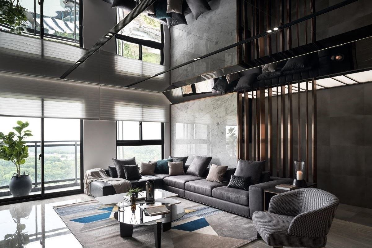 一位跨國企業家,買下絕佳頂樓挑高景觀做為居家招待會所,指定設計鬼才翁嘉鴻設計師規...