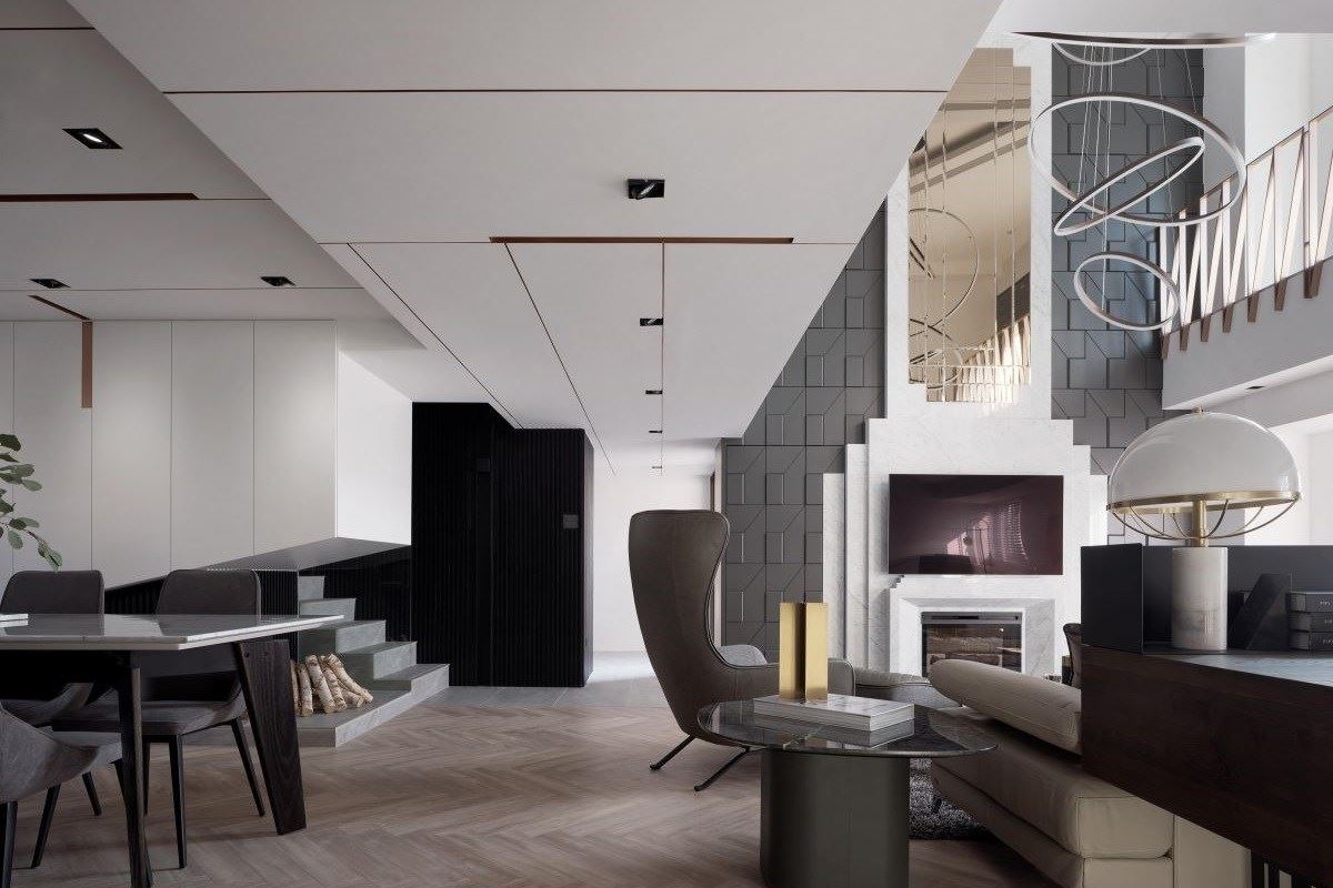 未來科技的線條、異材質混搭的視覺層次,在同建案相同的格局中, 鬼才設計師翁嘉鴻,...