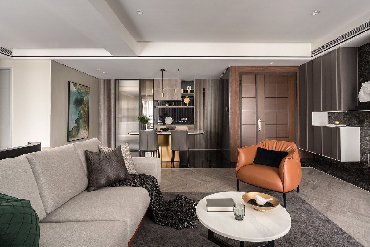 一家三口入住55坪新成屋,以色彩、質材堆疊沉穩細膩的場域表情,馥築時尚設計 湯鎮...