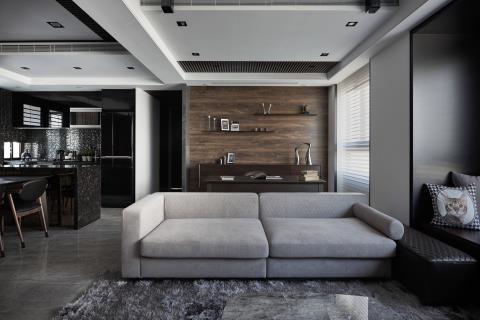 33.2 坪現代風,時尚有型、溫暖有生活感,源自於設計師巧妙應用木皮與石材穿插手...