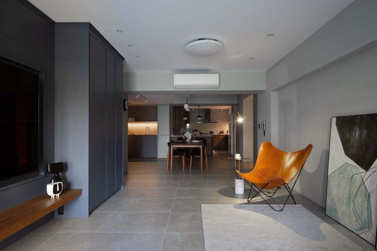45坪老宅翻新,以退休生活為設計發想,透過高機能配置、低彩度配色及大面積留白,為...
