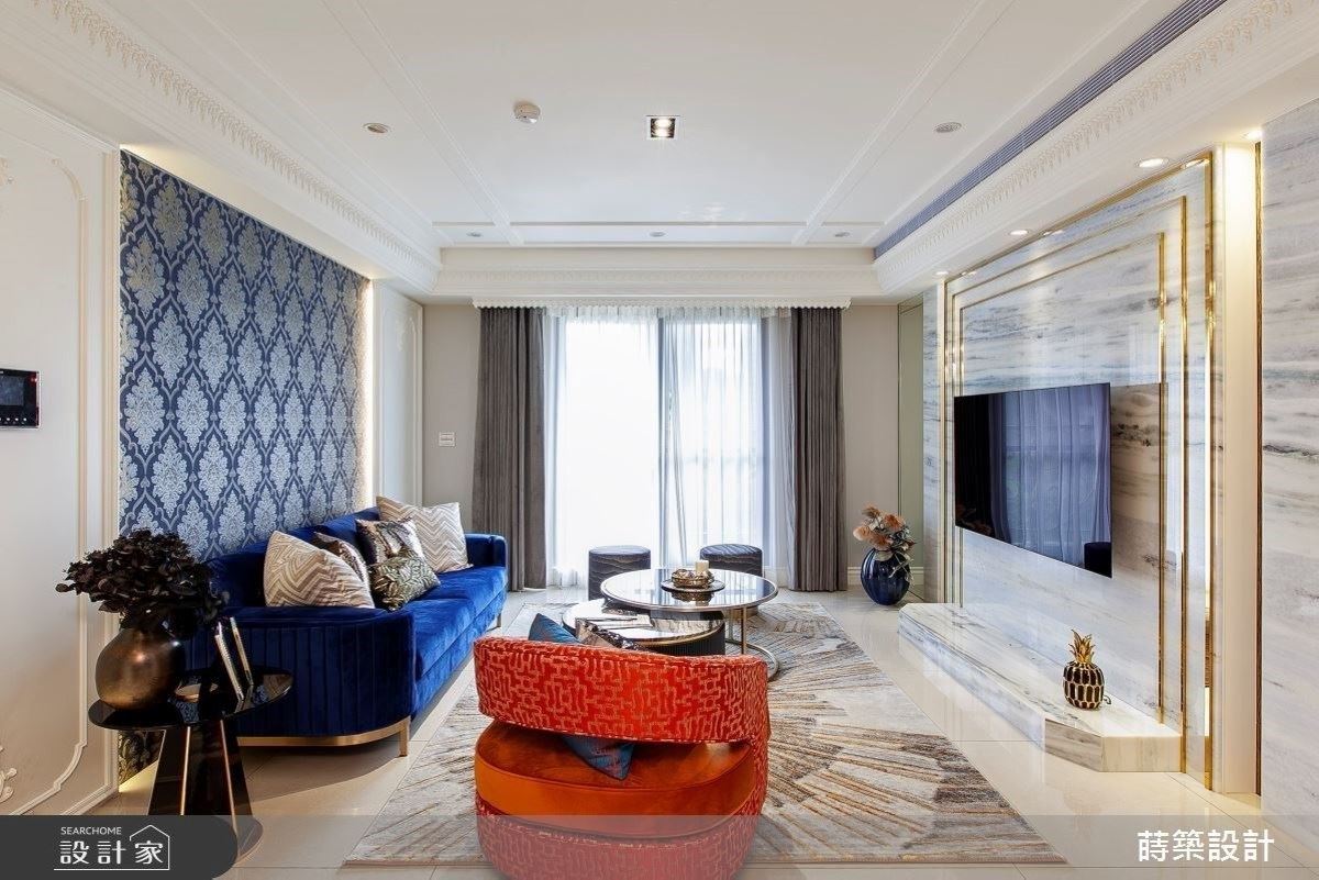 25 坪的新古典住宅,在有限的坪數內,透過大理石、鐵件及線板等異材質混搭,規劃三...