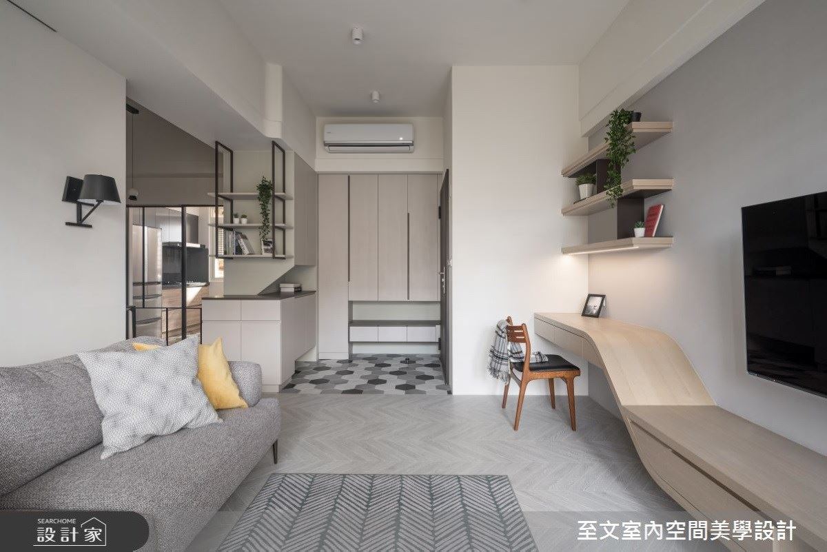 毛至文設計師善於規劃格局、動線,以巧思放大32坪中古屋視野,並完美引入明亮採光,...