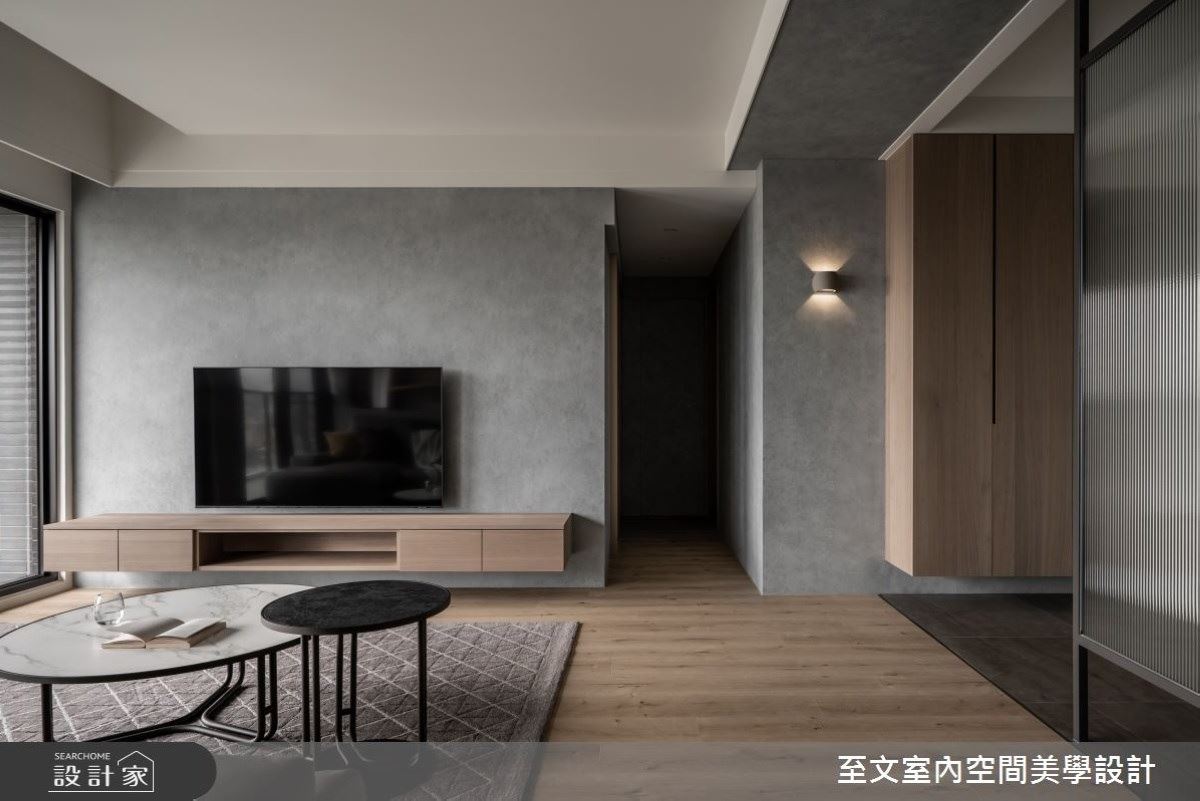 13坪的現代風新成屋居住者為1人,至文室內設計從客變時就著手規劃,以低彩度的灰階...