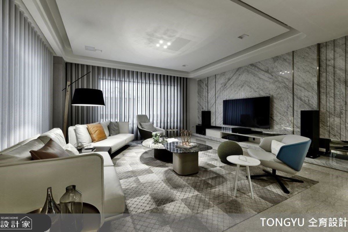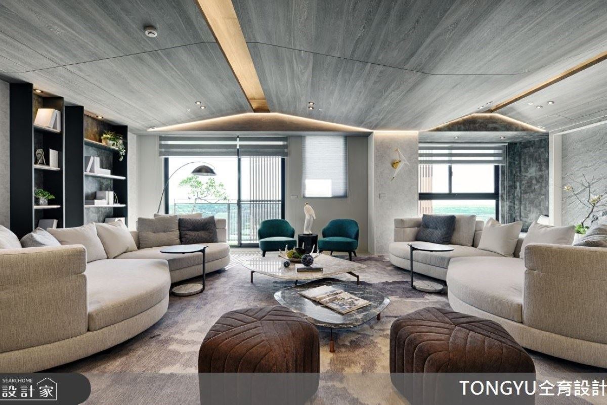 74坪淺灰調現代風宅內,天然石紋與木質元素交織寧靜氛圍,以低彩度的建材打造溫馨舒...