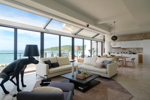 擁有一片海,是事業有成的屋主夫妻的夢想。於是在深圳惠州的十里銀灘購入一戶兩層的度...